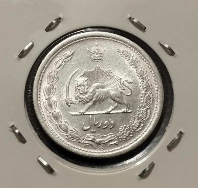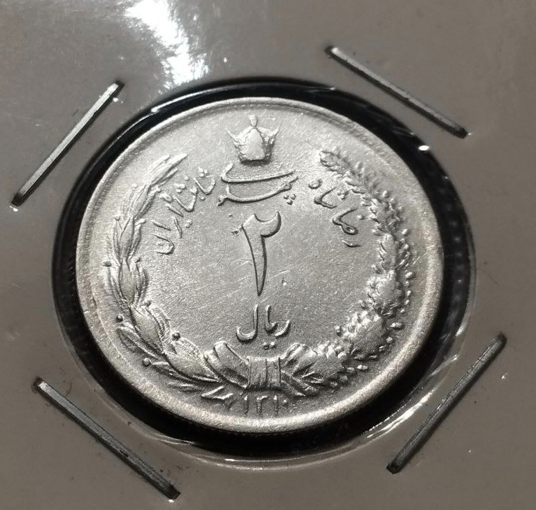 سکه سوپربانکی 2ریال نقره رضاشاه تاریخ کم 1310