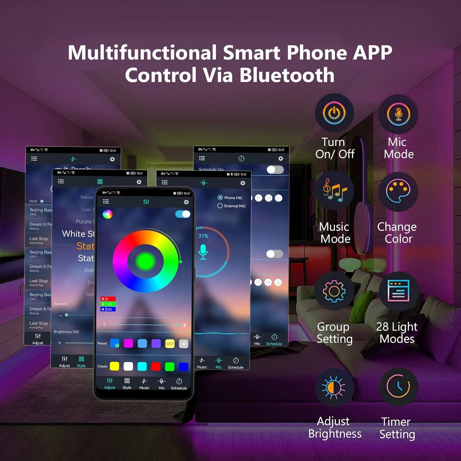 (کنترل چند منظوره برنامه از طریق بلوتوث): میتوانید نوارهای LED را با برنامه از راه دور کنترل کنید. در عرض چند ثانیه حال و هوای رنگی خود را ایجاد کنید. میتوانید به راحتی از طریق یک برنامه از آن استفاده کنید و نوار LED خود را متناسب با نیازهای خود شخصیسازی