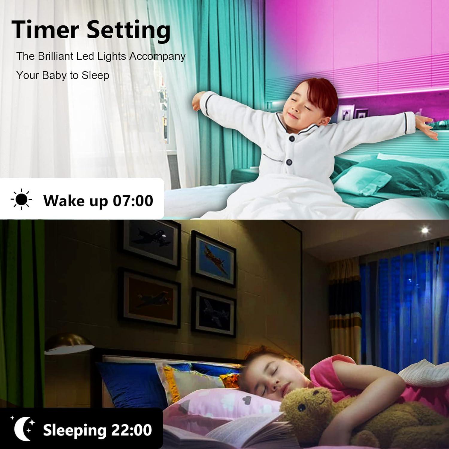 (تایمر و برنامهریزی): نوار LED خود را به برنامه روزانه خود اضافه کنید، روشن و خاموش شدن چراغها را در یک زمان مشخص از طریق برنامه تلفن هوشمند برنامهریزی کنید، مثلاً نوار LED را ساعت 7:00 صبح روشن کنید، چراغهای تزئینی LED را ساعت 9:00 صبح خاموش کنید. همچنین