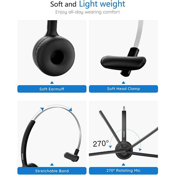 (هدستهای بلوتوث حذف نویز): هدستهای راننده کامیون Mpow دارای فناوری حذف نویز هستند که تا 99.6٪ از نویز ارسالی را برای تماسها و موسیقی شفاف حذف میکنند.
