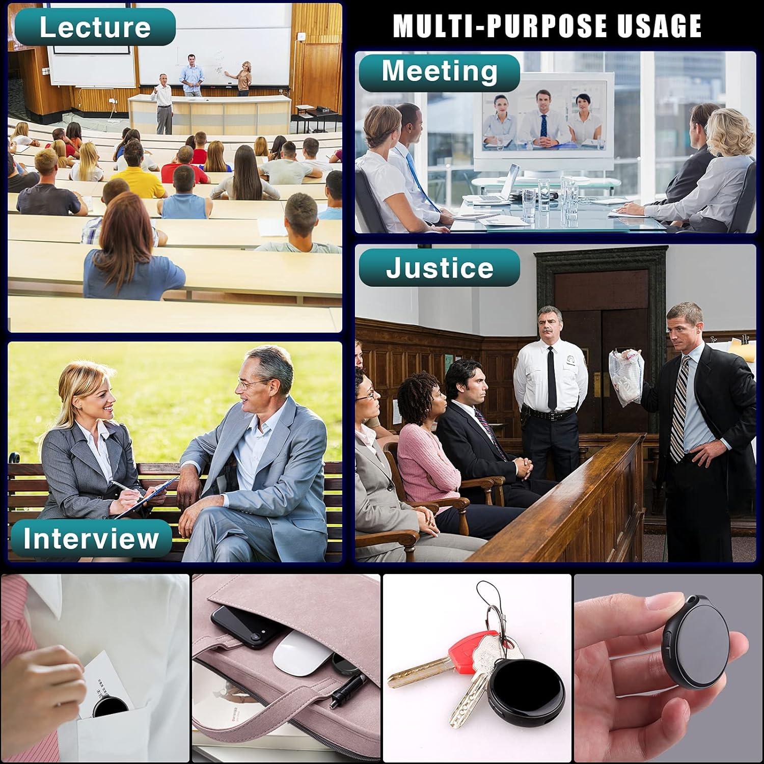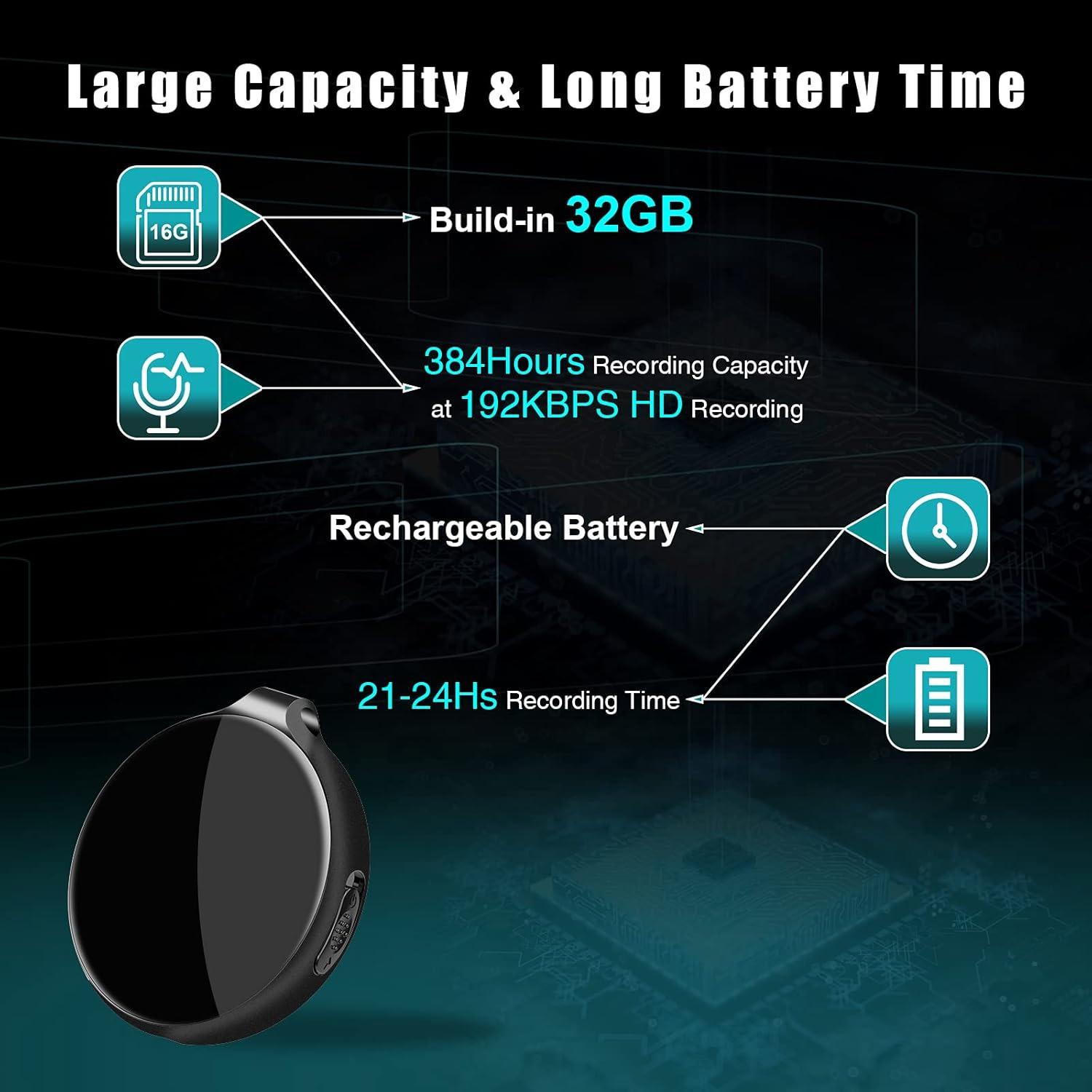 (طراحی متمایز و اندازه کوچک): ضبط کننده صدای کوچک ساخته شده از قاب شیشهای سهبعدی و اندازه فوقالعاده کوچک - قطر: 1.4 اینچ، ضخامت: 0.4 اینچ، سبک به سبک پر (فقط 1 اونس). این ضبط کننده صدای کوچک به راحتی قابل حمل است، میتوانید آن را دور گردن خود آویزان کنید،