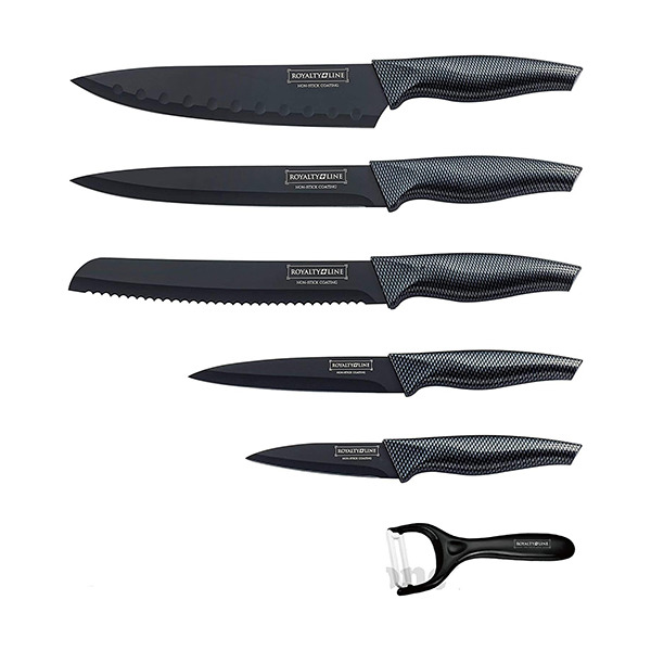 - سرویس چاقو روکش نچسب دستههای ضد لغزش 6 عددی مشکی رویالتی لاین