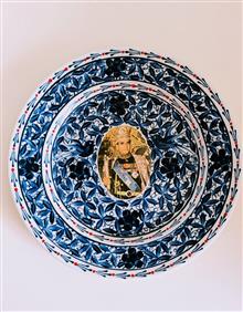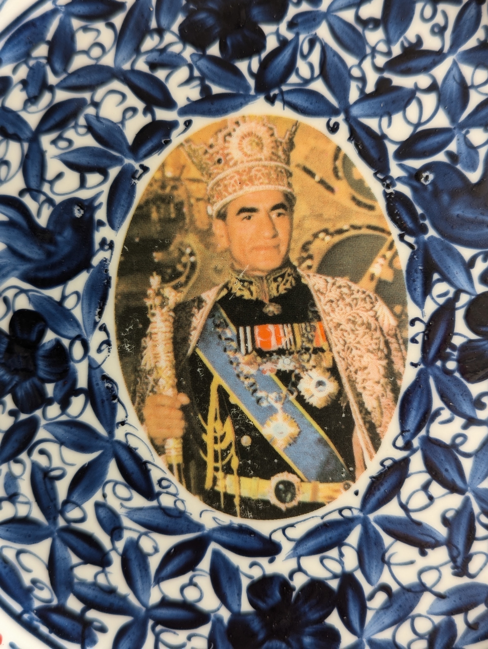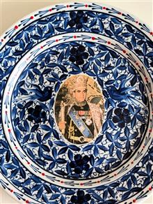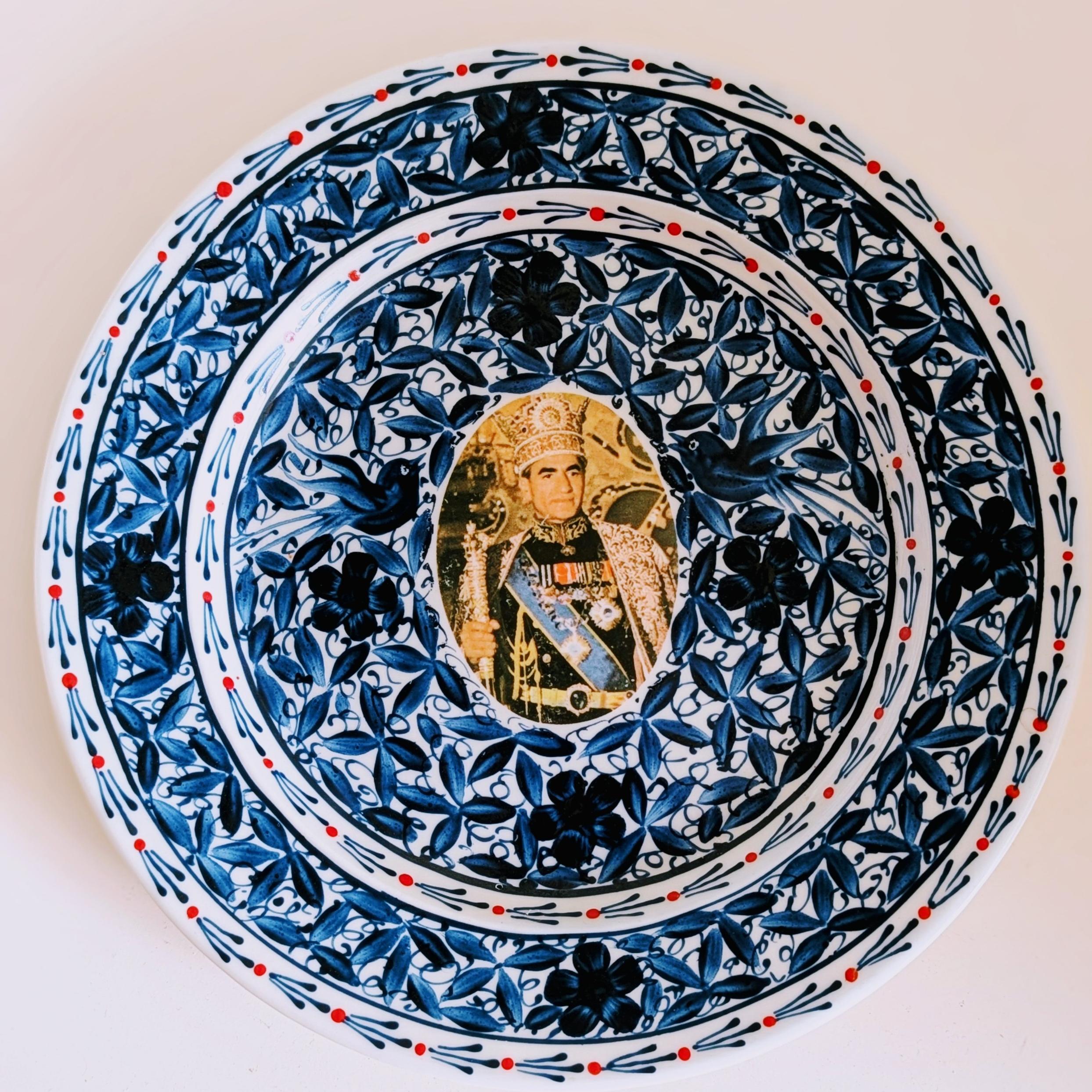 دیوارکوب آنتیک پهلوی جنس  چینی قلم آبی کار شده با دست، بسیار زیبا قطر بیست و سه سانت بسیار هنری و چشم نواز ویژه کلکسیون دارها