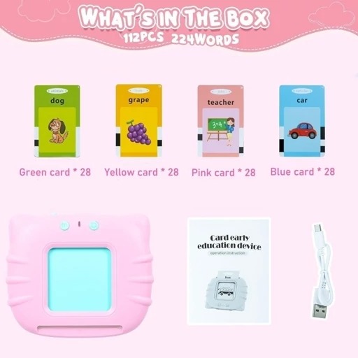این دستگاه ، لغات و عبارات متنوع زبان انگلیسی را با استفاده از فلش کارت های گویا به شما آموزش می دهد.