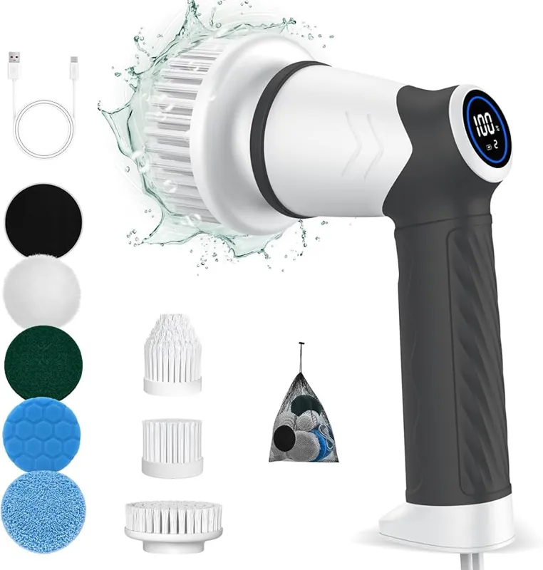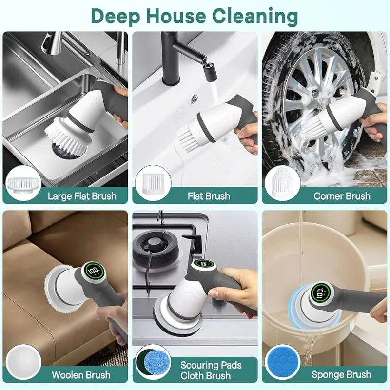 باتری بادوام: اسکرابر دوش برقی بیسیم دارای یک باتری 2500 میلیآمپر ساعتی با عمر طولانی است که با یک بار شارژ کامل، تا 90 دقیقه تمیزکاری مداوم را فراهم میکند. با جستجوی مداوم برای پریز برق یا سر و کله زدن با سیمهای مزاحم خداحافظی کنید. ایدهآل برای تمیز کردن حمام، آشپزخانه، بالکن، باغ و لاستیک ماشین. موهای بادوام، 6 سر برس ضد خش: اسکرابر چرخشی ما شامل 6 سر برس بادوام و قابل استفاده مجدد برای سناریوهای مختلف است. برس گنبدی برای حمام؛ برس تخت برای سطوحی مانند کاشی، دیوار و استخر؛ برس گوشه برای تمیز کردن اتصالات، شیرآلات و لبهها عالی است؛ برس پارچه برای کفپوشهای چوبی و تمیز کردن مبلمان؛ پد اسفنجی برای پنجره. نکته: لطفاً هنگام خم شدن، موهای برس را با آب داغ اسپری کنید تا دوباره ترمیم شوند. میتوانید برسهای جایگزین را از آمازون خریداری کنید.