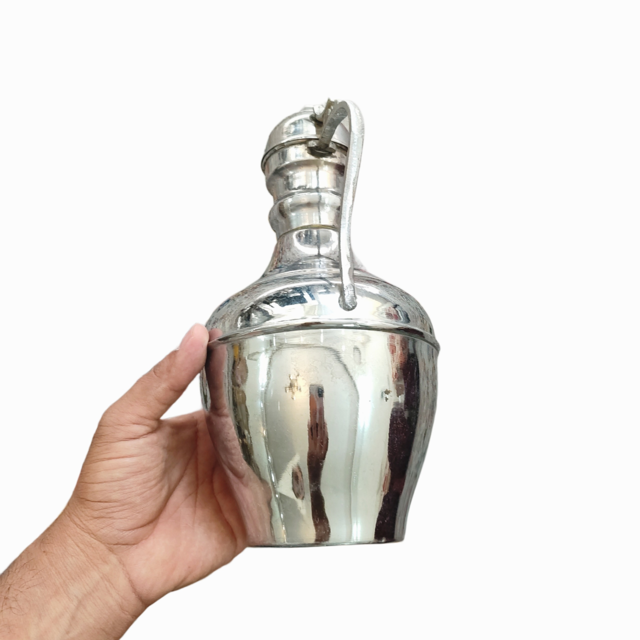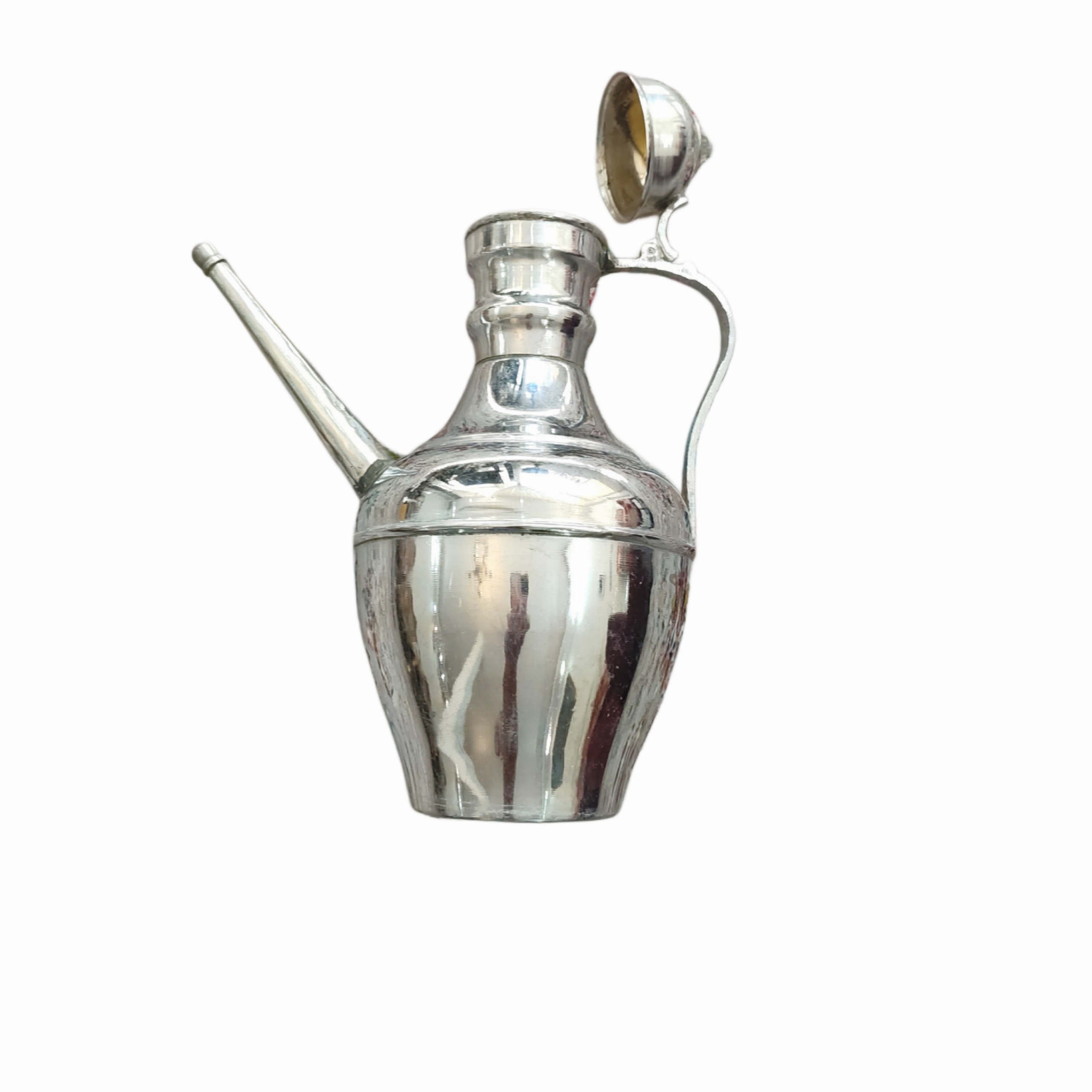 جنس آفتابه برنجی است ولی روی فلز برنج آبکروم داده شده است