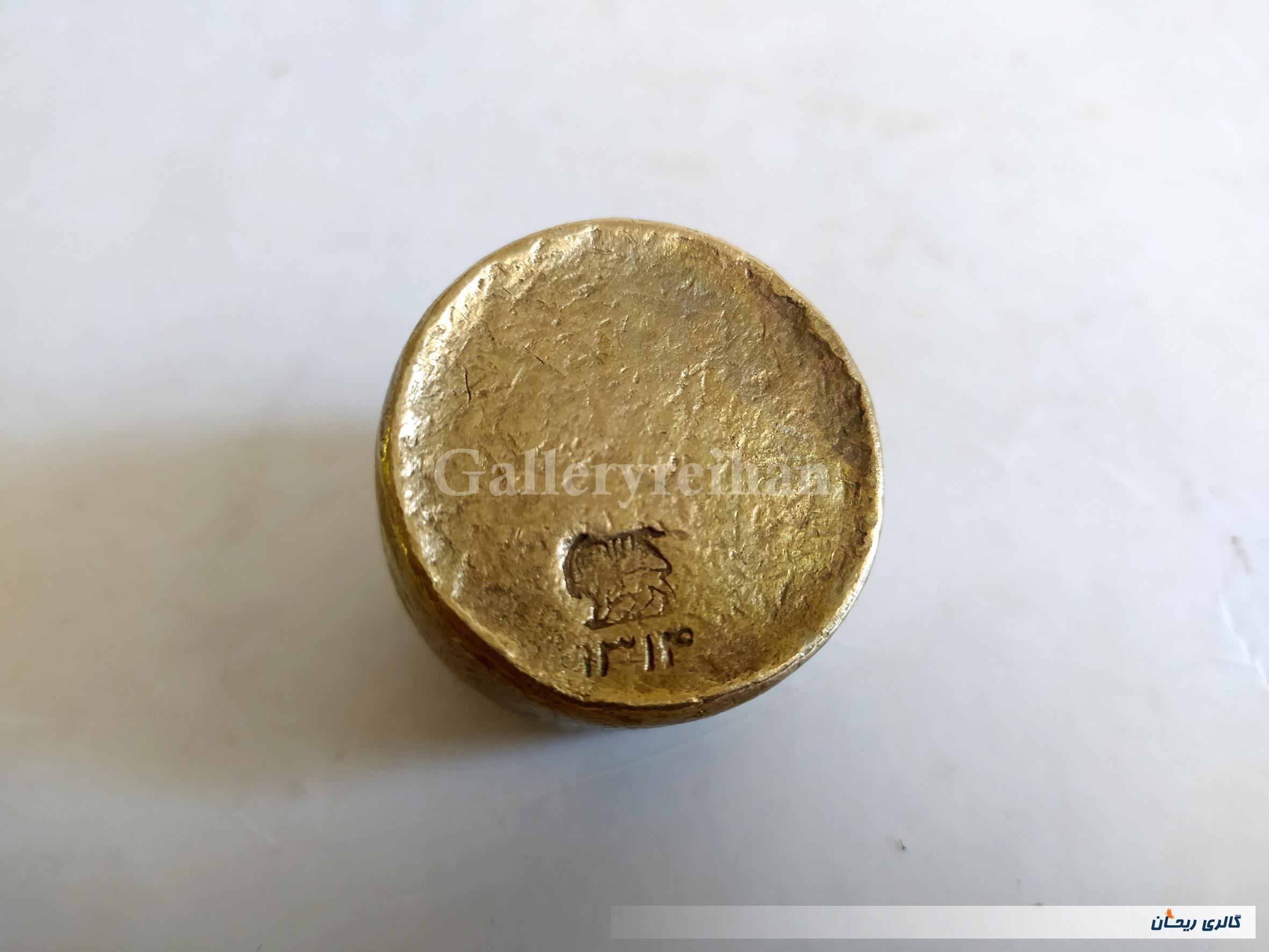 به علت قدیمی بودن و این که اجناس برنجی به مرور زمان تیره میشوند آن را تمیز کرده ام و پس از عکس برداری در نایلون  زیپی گذاشته شده است با این صورت امکان دارد باز به مرور زمان در مجاورت هوا یا حتی در پاکت زیپی باز تغییر رنگ دهد و کمی کدر شود که میتوان آن را با جلاسنج به رنگ طلایی در بیاورید