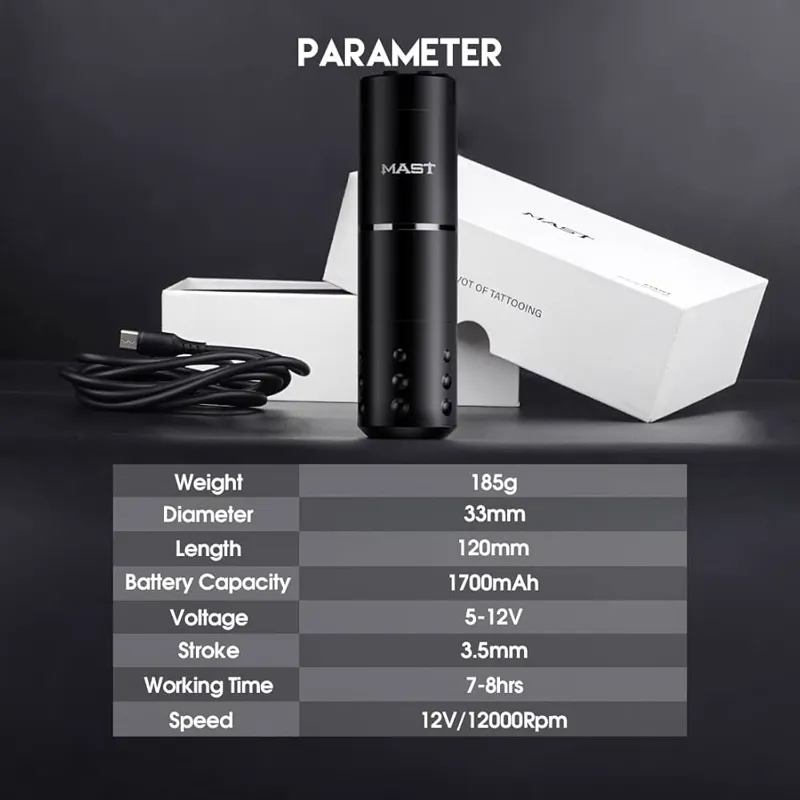 دستگاه تاتو بی سیم MKD Mast AI قلم تاتو چرخشی قلم باتری دستگاه قلم باتری بی سیم برای تاتو