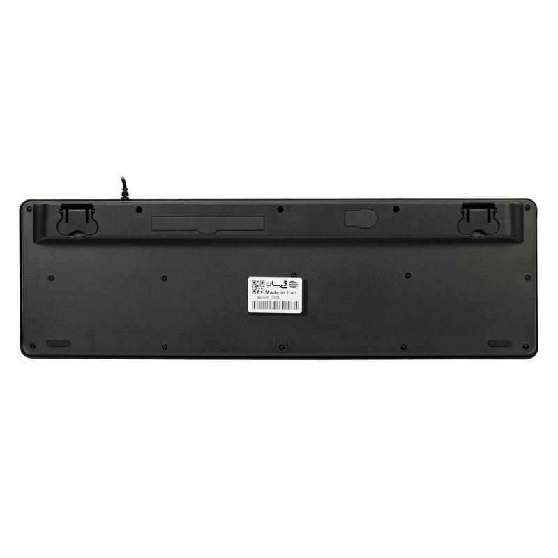 بدنه ساخته شده از جنس پلاستیک ABS مقاوم در برابر ضربه و فشار، دارای 104 عدد کلید فیزیکی شامل کلید Functionاتصال با سیم از طریق رابط USB با کابل 150 سانتی متری و روکش TPE مقاوم در برابر پارگی و خمیدگیبرخورداری از 3 عدد نشانگر LED تعبیه شده بر روی بدنه، پشتیبانی از اتصال Plug & Playمیزان ضربه پذیری کلید ها حدود 10 میلیون کلیک و حروف فارسی حک شده بر روی آنها