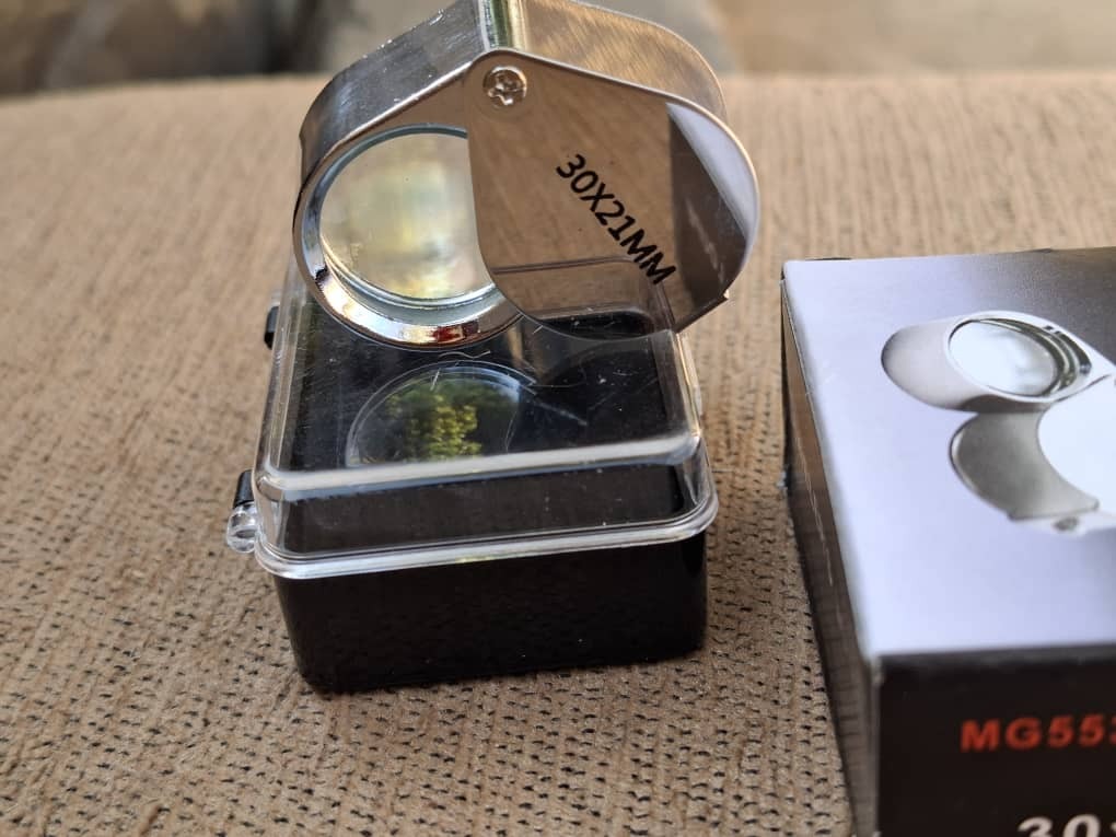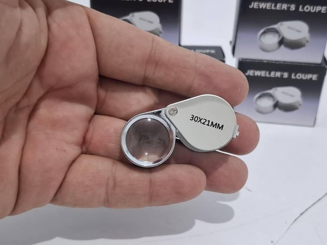 یک ذره بین با قدرت بزرگنمایی 30 برابر و بسیار جمع و جور و تاشو قابلیت حمل در جیب و آویز گردنی - جنس بدنه استیل خالص با عدسی از جنس شیشه