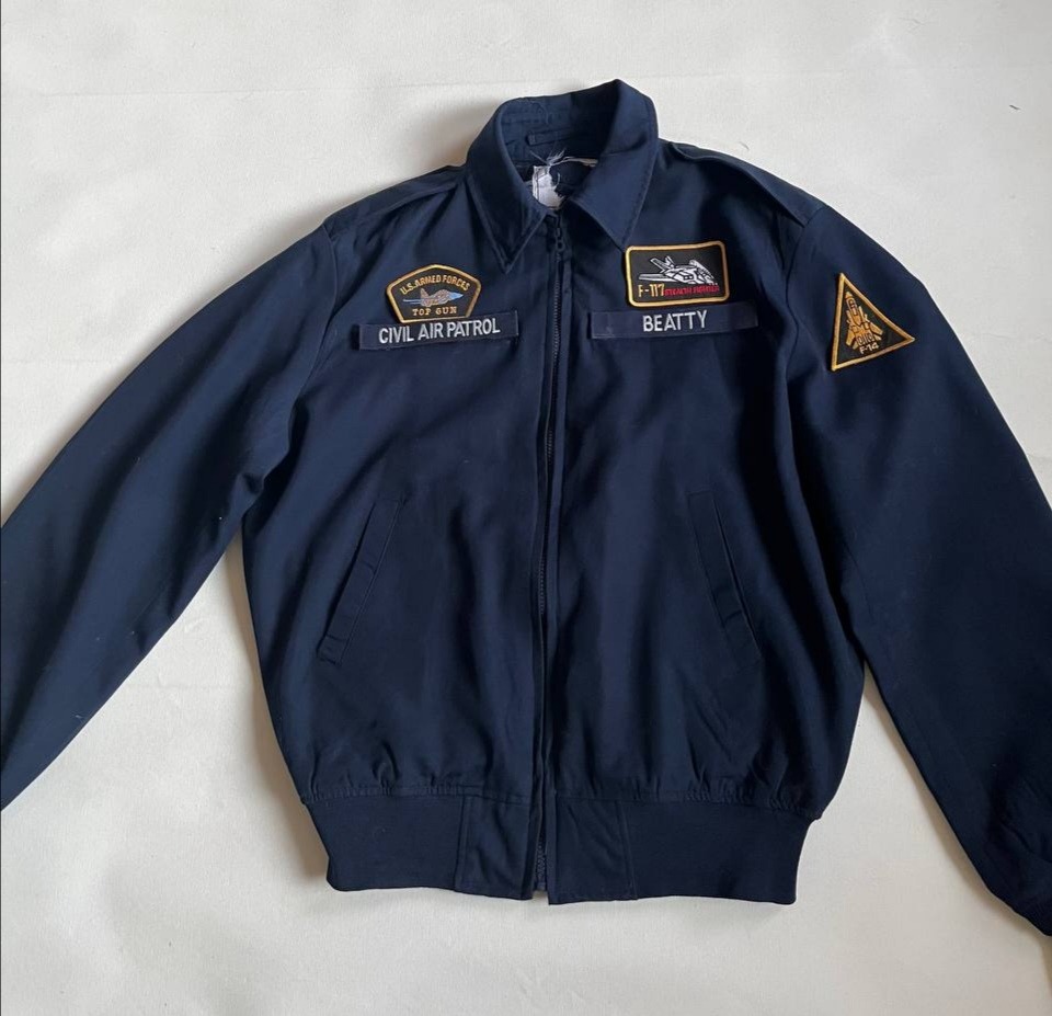 کاپشن خلبانی آمریکایی وینتج در حد نو صدر صد اورجینال سازمانی نیروی هوایی ارتش ایالات متحده زمستانی پشمی، با قابلیت نصب پوش دوم کشباف کاملا سالم در حد نو با پچ های اورجینال نام و گشت هوایی
