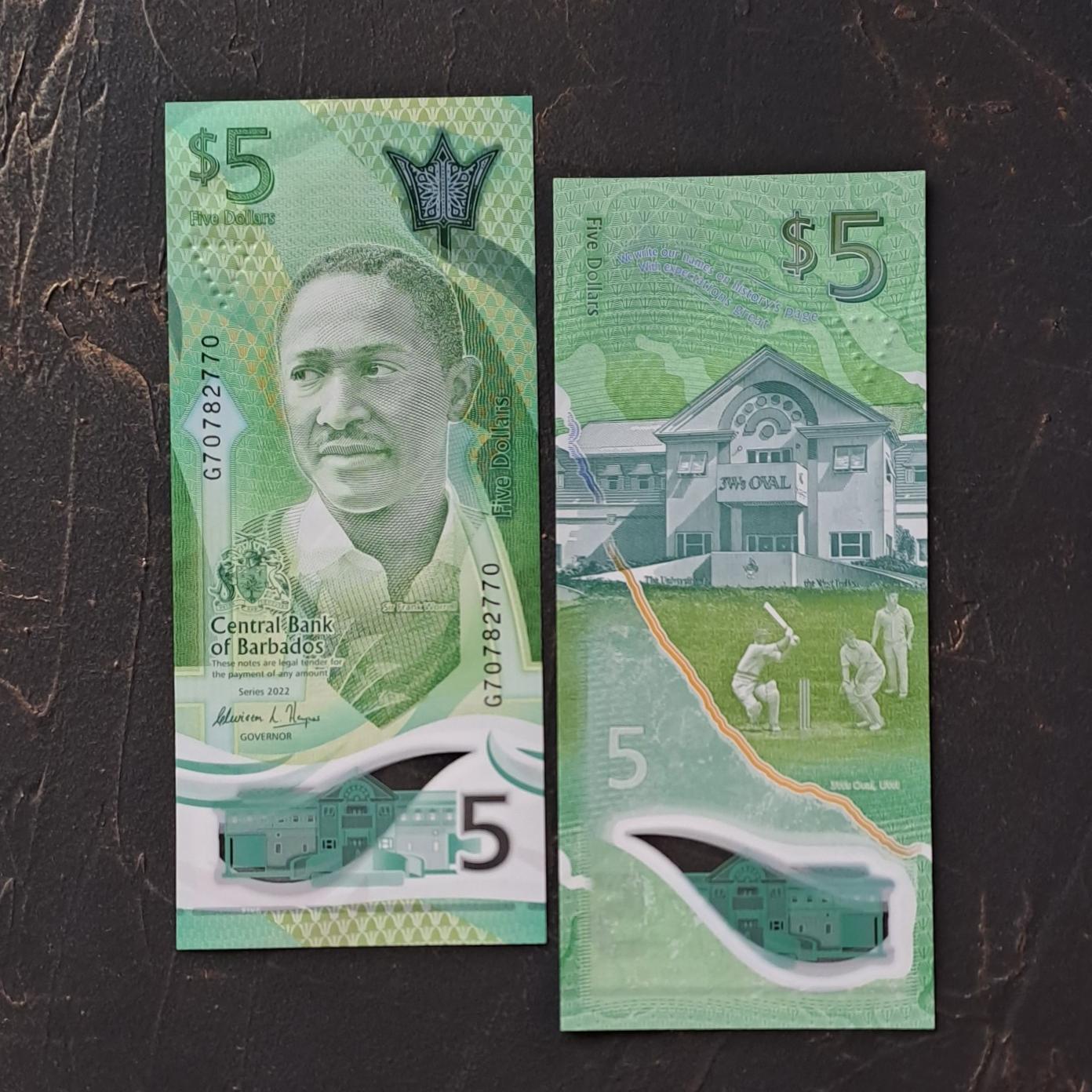 اسکناس پلیمری بسیار زیبای 5 دلار باربادوس