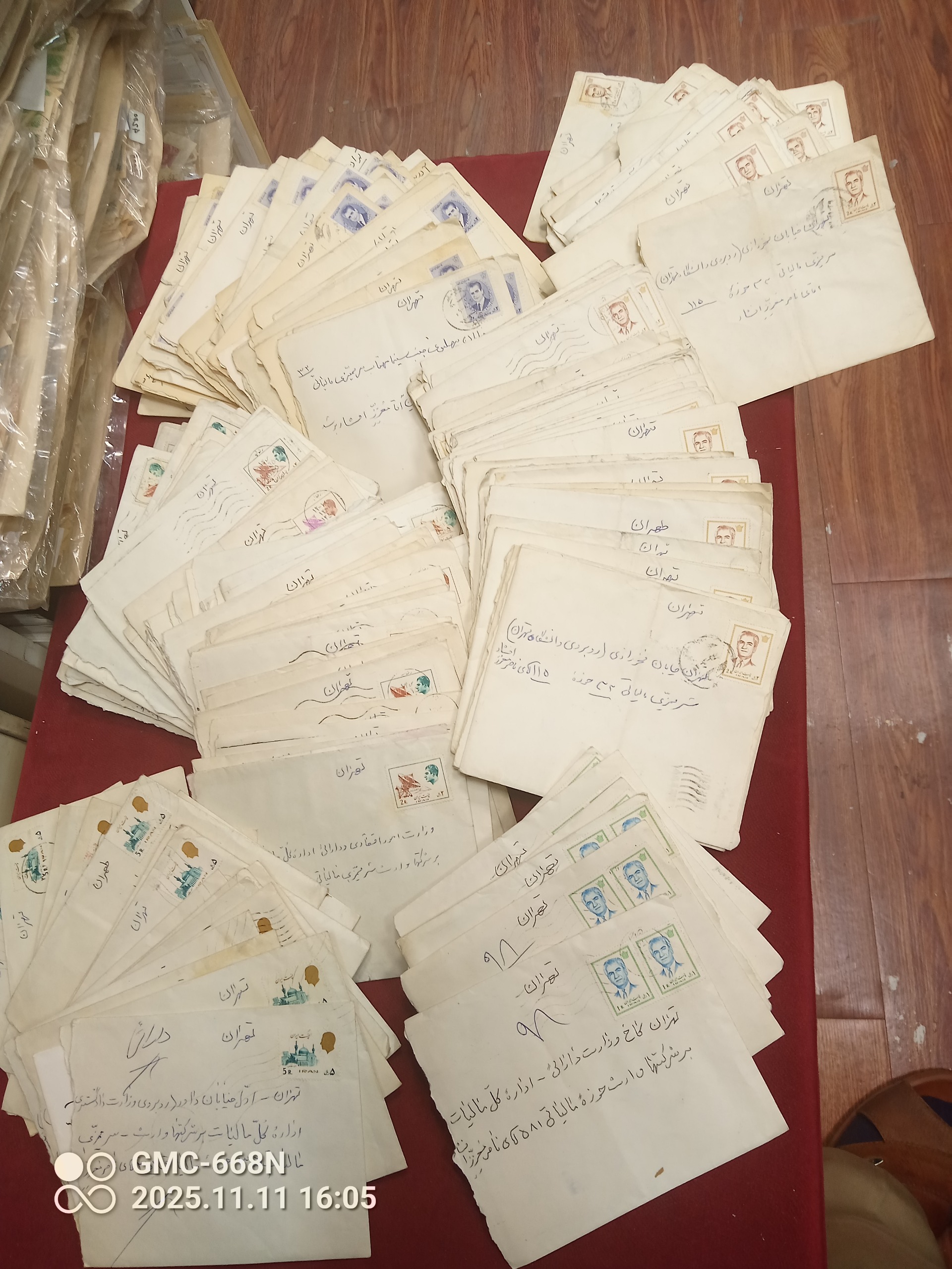300پاکت پهلوی ارسالی از رضائیه برای یک نفر شاید همه زیاد دقت نکردم صدتا هم اوائل انقلاب ارسالی از ارومیه با نامه اکثرا یا همه دقت نکردم نامه مربوط به تجارت یا اداری نیست ضمنا تعدادی بی تمبر هم هست یا آسیب جریی که میفرستم
