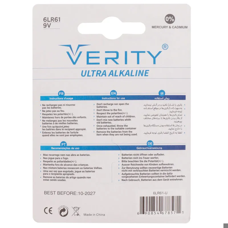 باتری کتابی وریتی مدل Ultra Alkaline 6LR61 9V