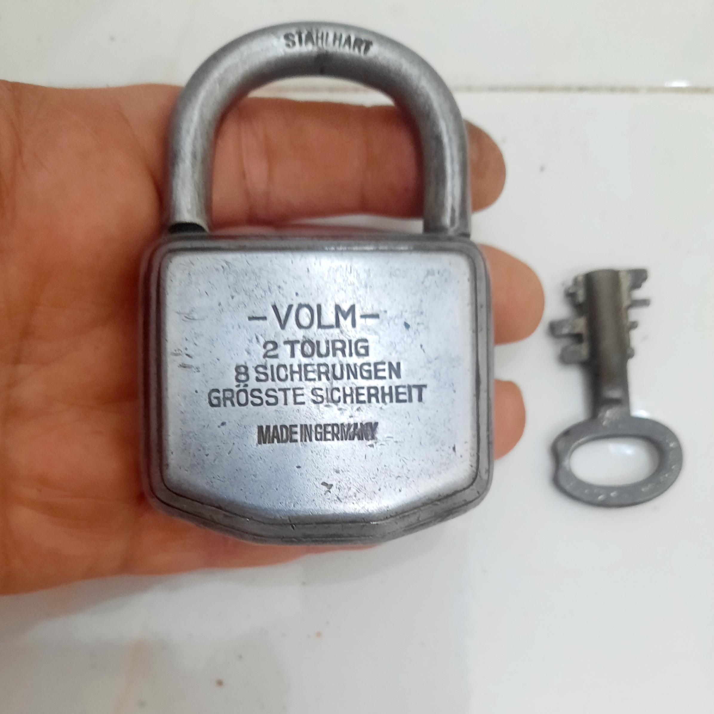 قفل خیلی زیبای volm آلمان،دوزبانه یعنی با دوزبانه کنار هم قفل میشود، جالب این هست که وقتی بخواهی آنرا قفل کنی با چرخش یک زبانه کلیدبیرون نمی آید بلکه باید دو زبانه قفل شودتا کلید بیرون بیاید هنگام باز کردن هم همینطور ،با کلید پیچیده غیر قابل کپی ،این قفل هیچ درزی ندارد و ایمنی آن خیلی بیشتر از قفلهای فعلی هست.