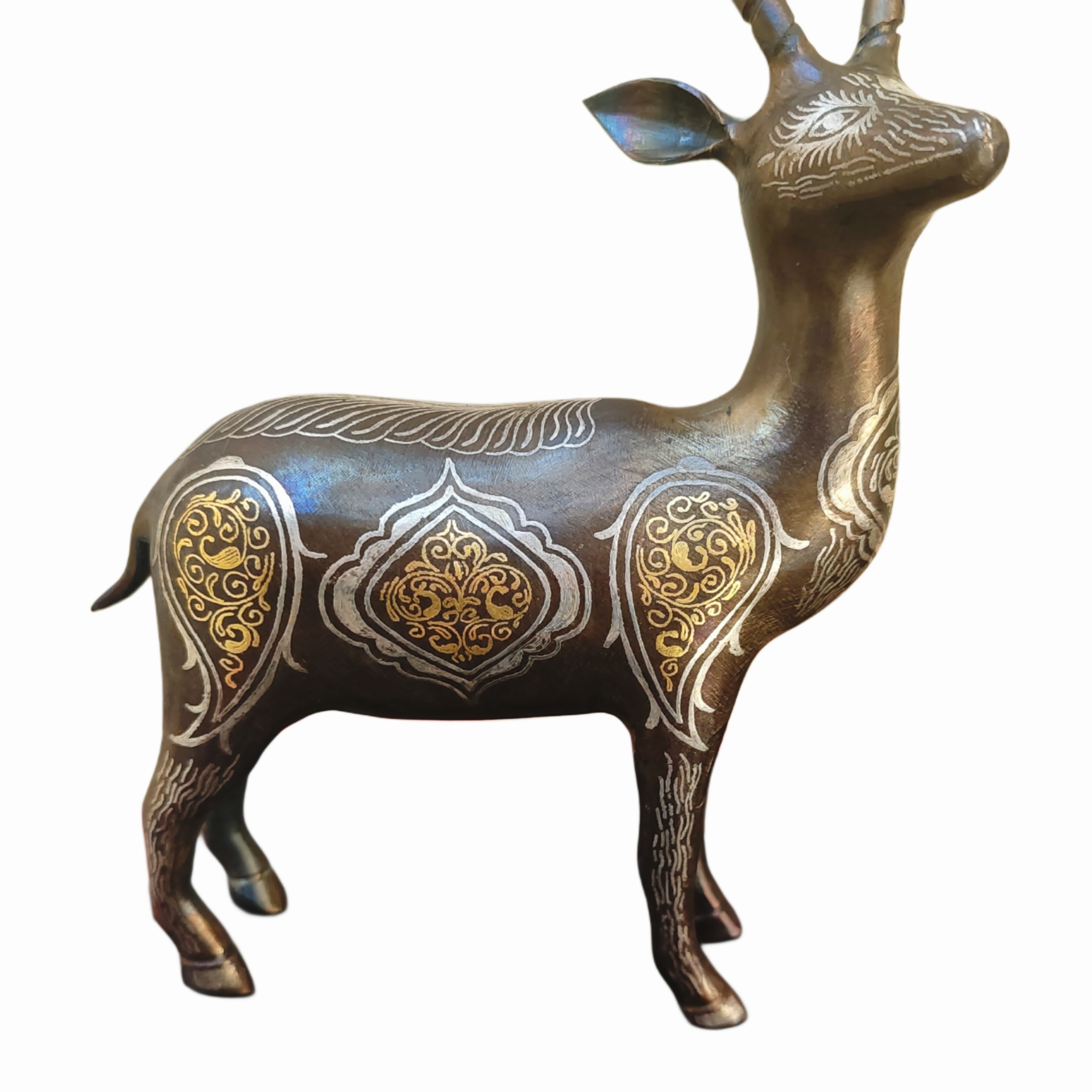 مجسمه گوزن فولادی نقره طلا کوبی جهیزیه دکوری کادو