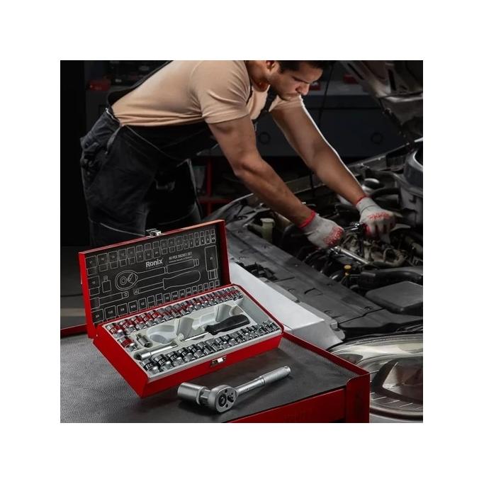 متعلقات دارای بکس شمع 16 میلی متری دارای 2 دسته کمکی 10 اینچی جغجغه 1/2 اینچی 72 دندانه با دسته ارگونومیک دسته هندلی 1/2 اینچ دارای یک آچار لقلقه 1/2 اینچ