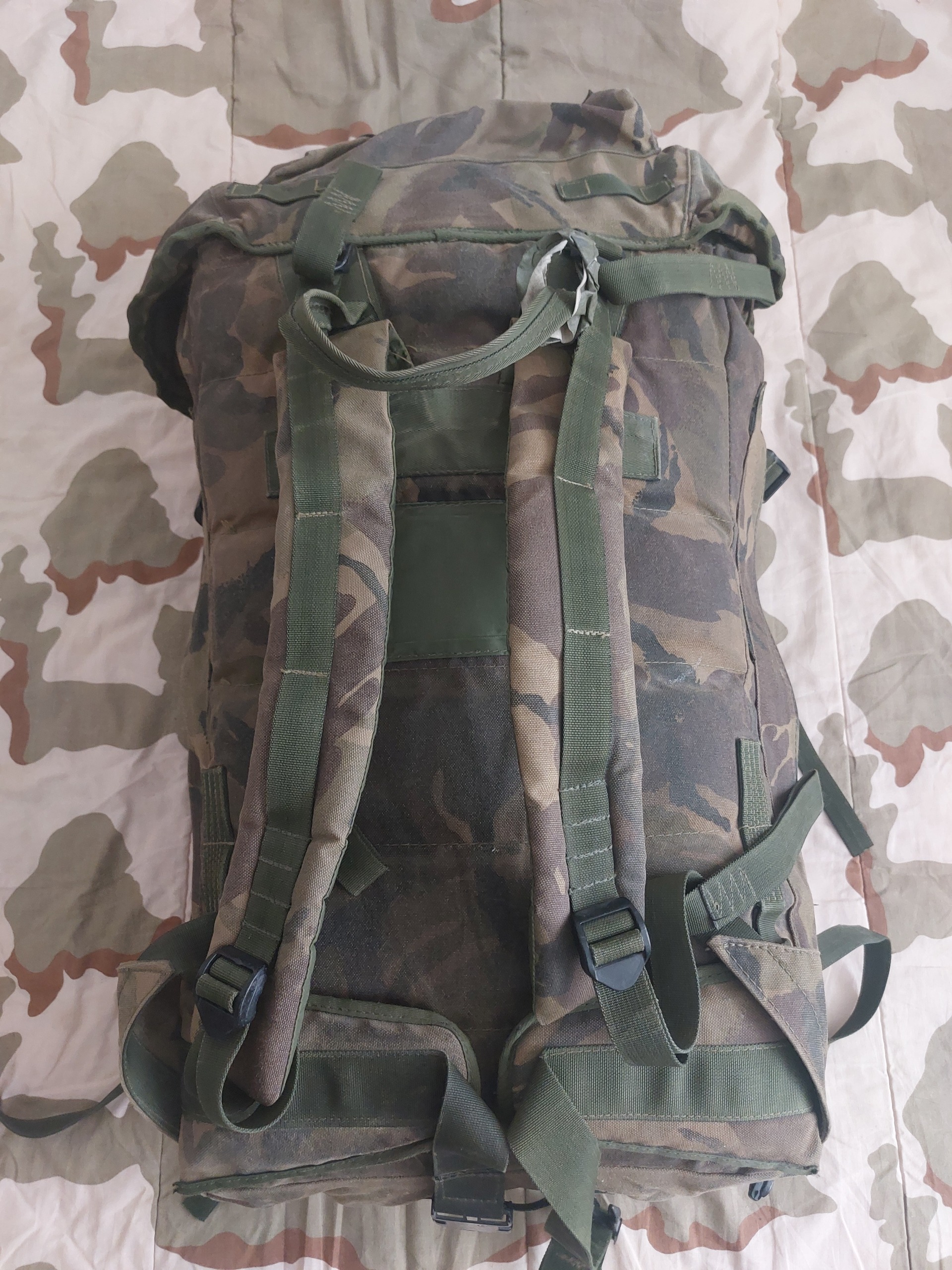 کولهپشتی اصل ارتش بریتانیا (British Army Issue) با طرح استتار کلاسیک DPM (Disruptive Pattern Material)، ساختهشده برای استفاده میدانی در شرایط سخت.
