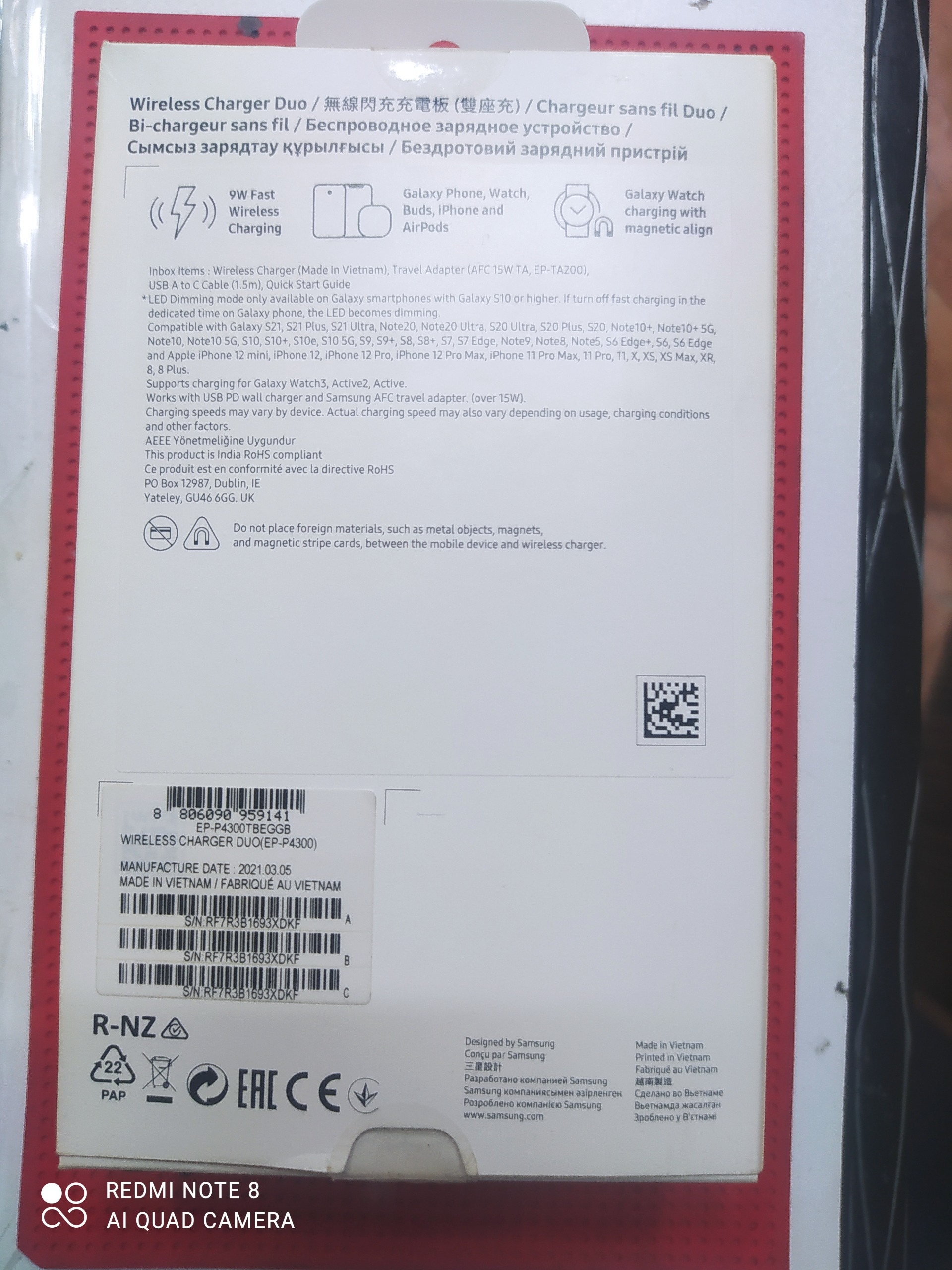 داکت شارژر وایرلس موبایلو ساعت دیجیتال.ساخت سامسونگ ویژه اپل ایفون و سامسونگ و همه گوشی ها واچ های وایرلس اورژینال .هدیه بوده لازم ندارم تست هم شده .قیمت بازار 3700 هست که من 2500 تقدیم میکنم