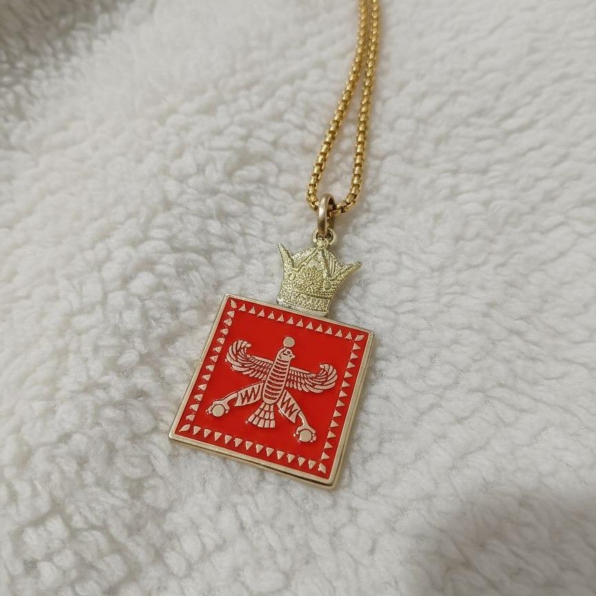 گردنبند درفش شهباز تاج دار ساخته شده از برنز رنگ ثابت میان کاری شده کار درجه یک