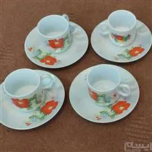 فنجان و نعلبکی چینی اصل مارک دار ، گلدار با رنگ طرح صدفی ، طرح گل یکی از فنجانها با سه تای دیگر متفاوت است ، مصرف روز مره و دکوراسیونی ، وزن 4 عدد نعلبکی 351 گرم ، قطر دهنه 10/8 سانت " وزن 4 عدد فنجان 259 گرم ، ارتفاع 5 ، قطر دهنه 5 سانت " ، آنتیک و کمیاب ، وارد شده از کشور عراق ، قدمت دار ، قیمت درج شده ، قیمت 8 تا میباشد ، تقدیم به شما خاص پسندان ...