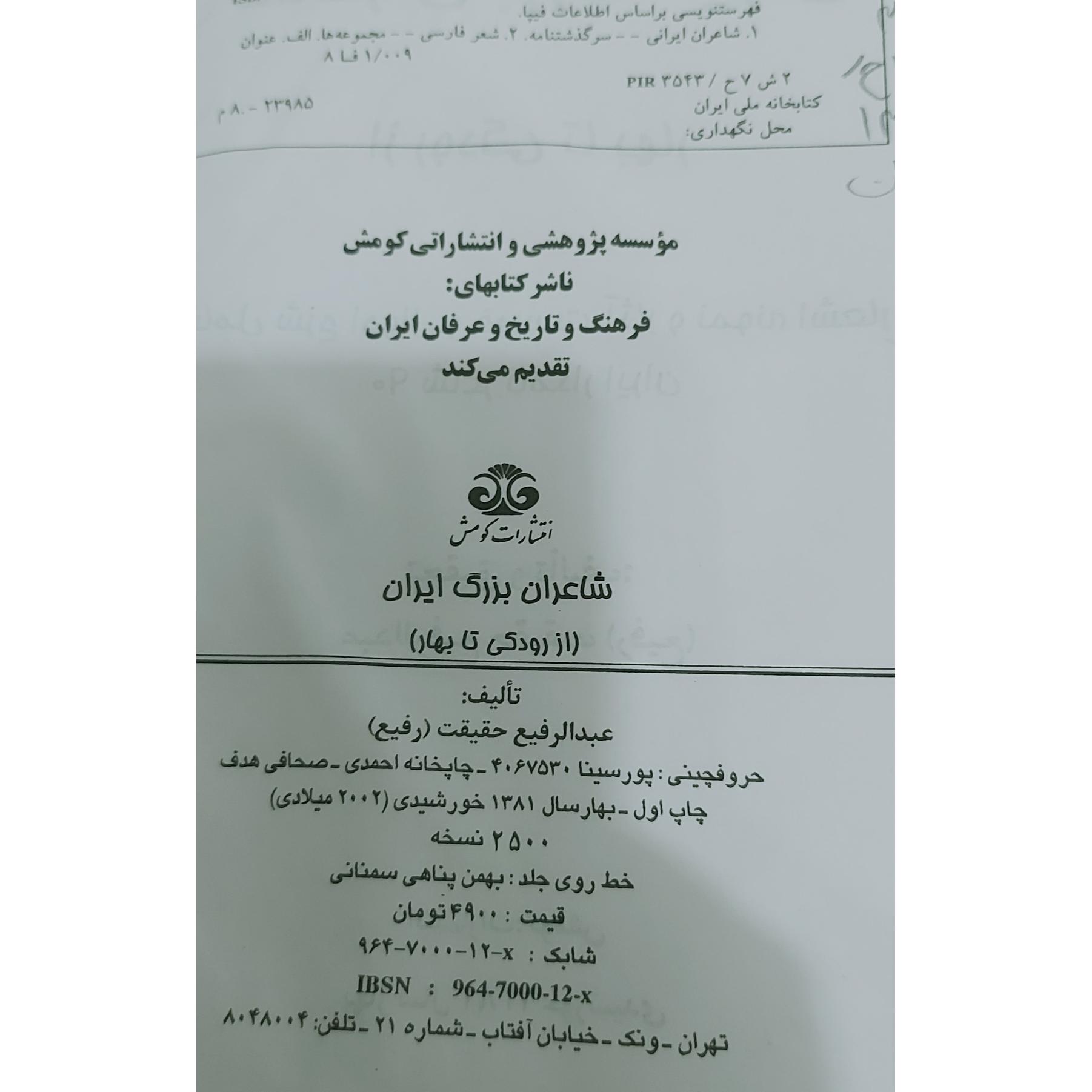 کتاب شاعران بزرگ ایران