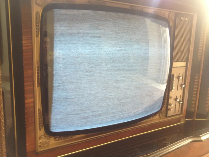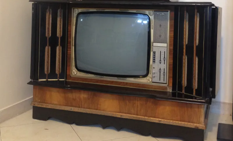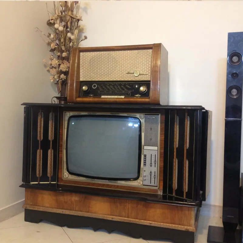 تلویزیون دکور خوبی داره ولی به علت سن زیاد روی سطوحش حالتهایی از ترک های سطحی داره