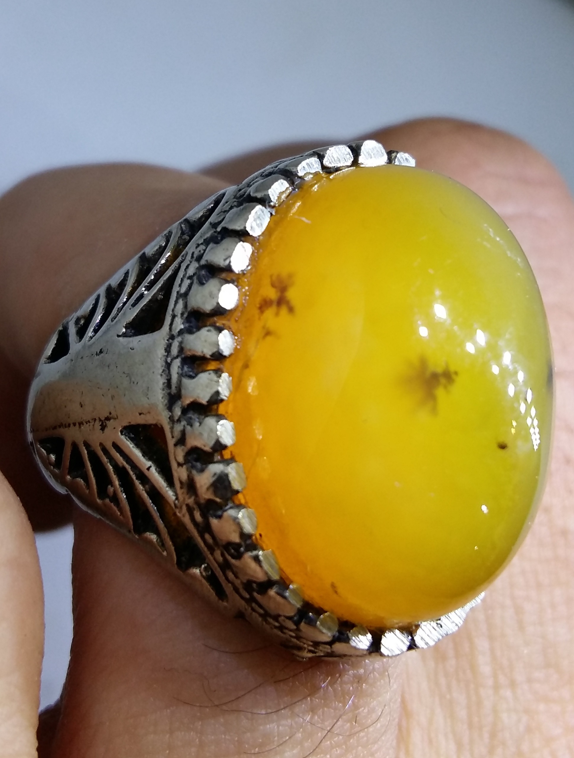 انگشتر کلکسیونی عقیق زرد شجر دار تصویردار درختی