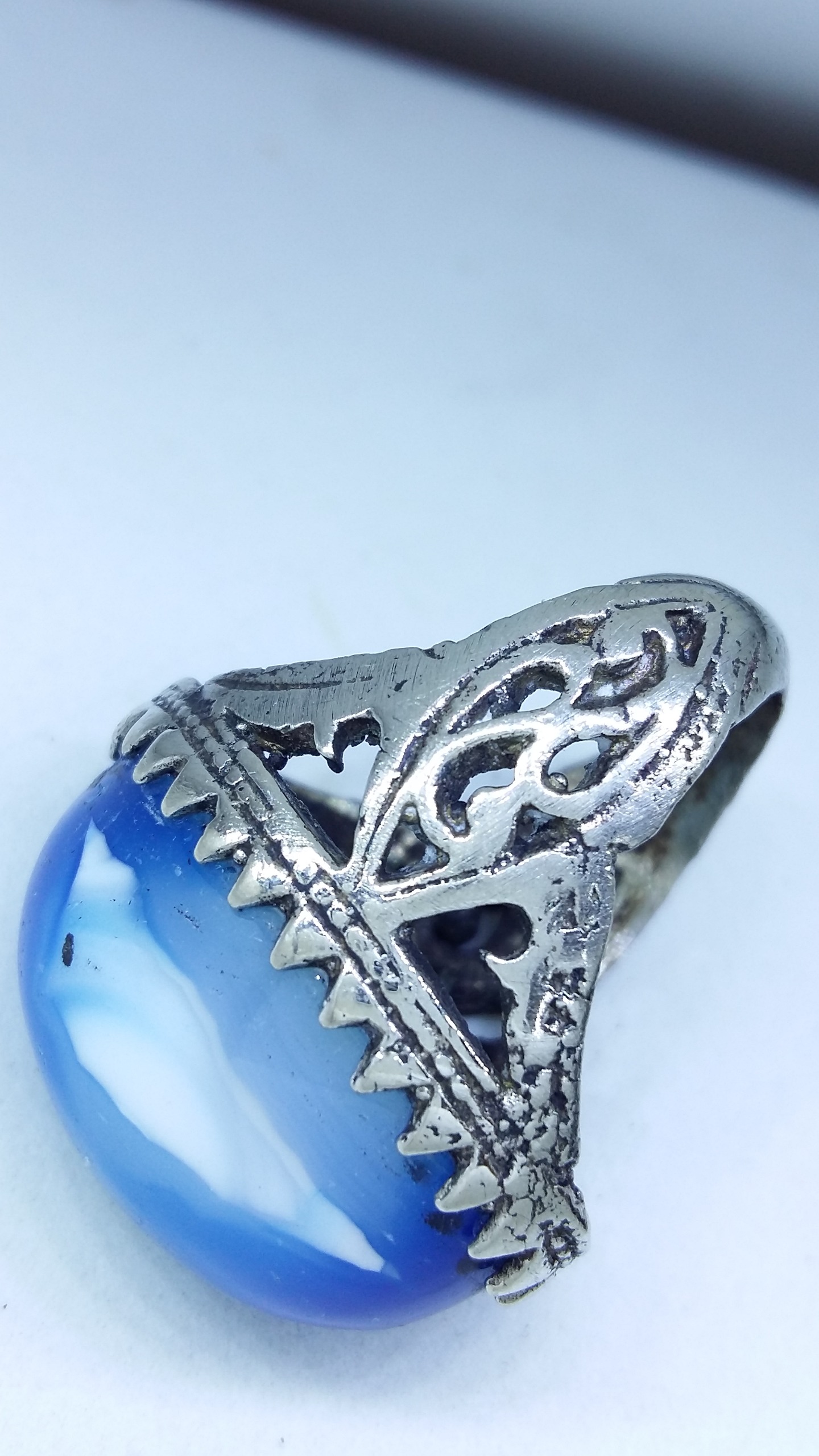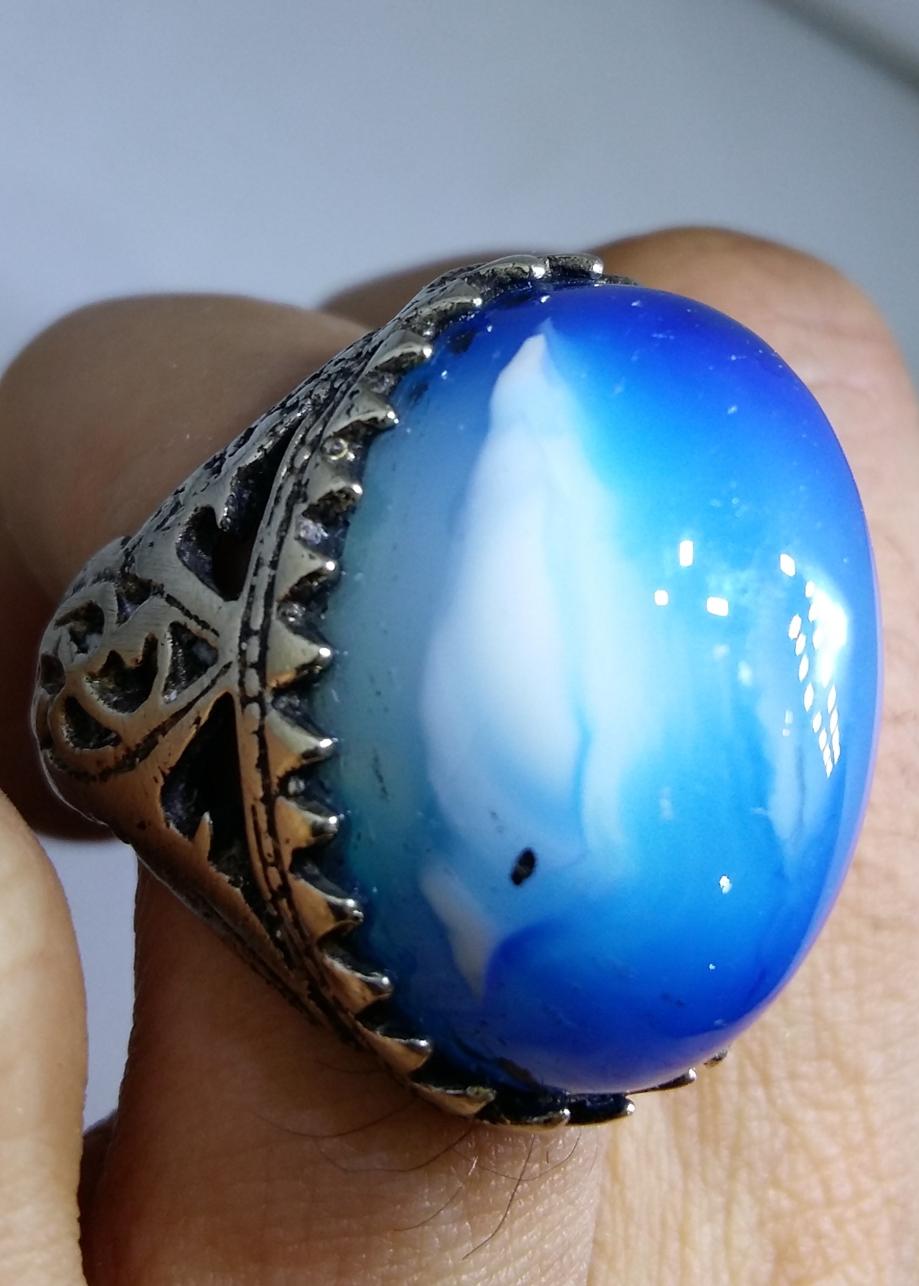 انگشتر بی همتا عقیق آبی آسمونی زیبای برزیلی