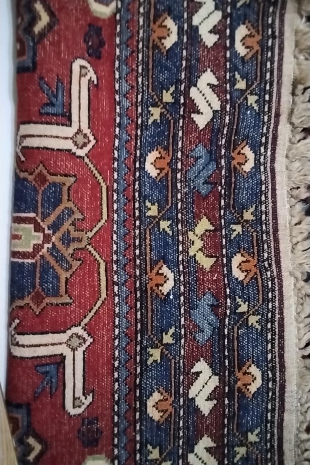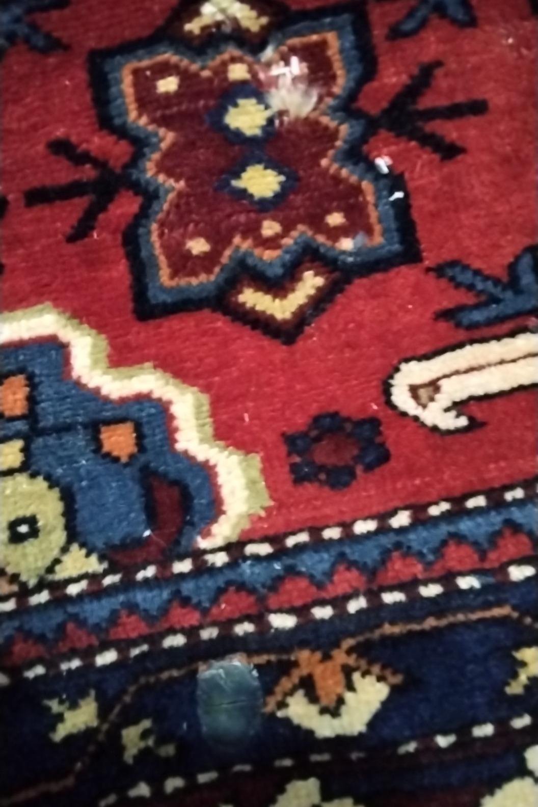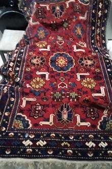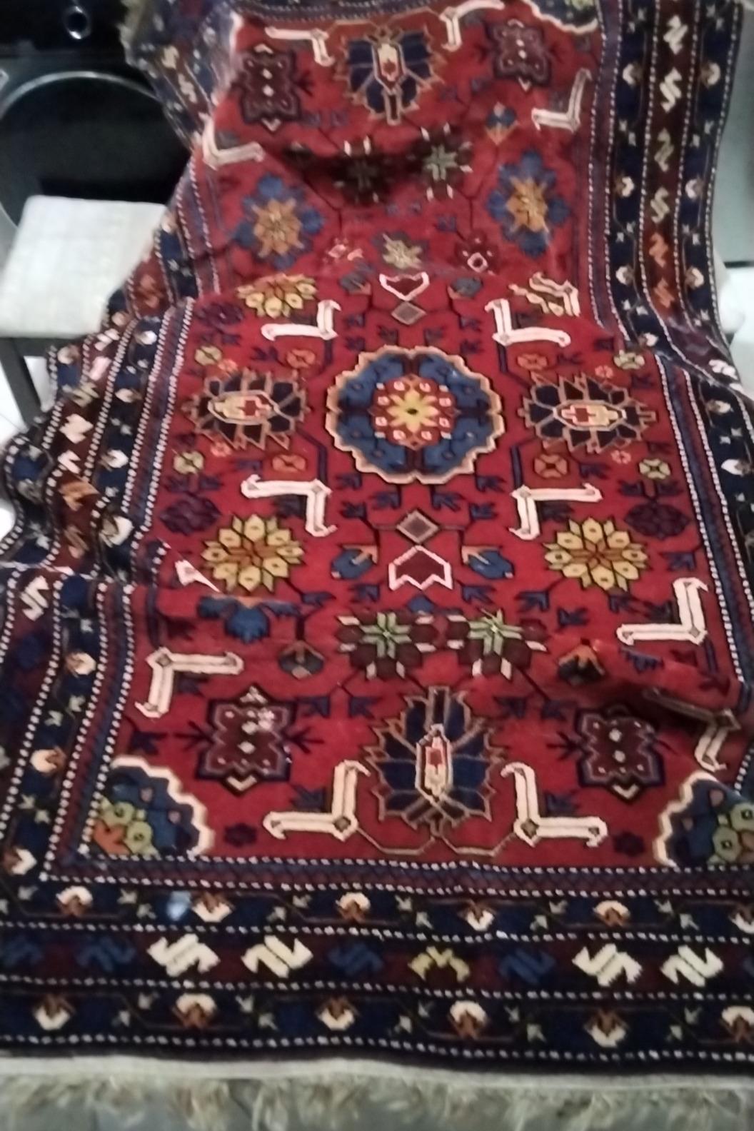 سلام این قالیچه با رنگ  کاملا طبیعی و گیاهی هست و قدمت بالای 80سال داره  کار دست باکو  و وارداتی و از نوع آسان  تا شو هست ضمنا یک طرف فرش به علت رطوبت گرفتگی که  یک طرف 10 سانت عرض کمتر شده و زدگی و یک تکه چسب پلاستیکی که تو تصویر مشخصه در صورت پسند تصاویر بیشتری ارسال میشه  ضمنا اگر جفتش پیدا شه وسالم  جفت شه بالای500 میلون حداقل قیمت داره و این قیمت  به علت ایرادهایی هست که  اشاره شد