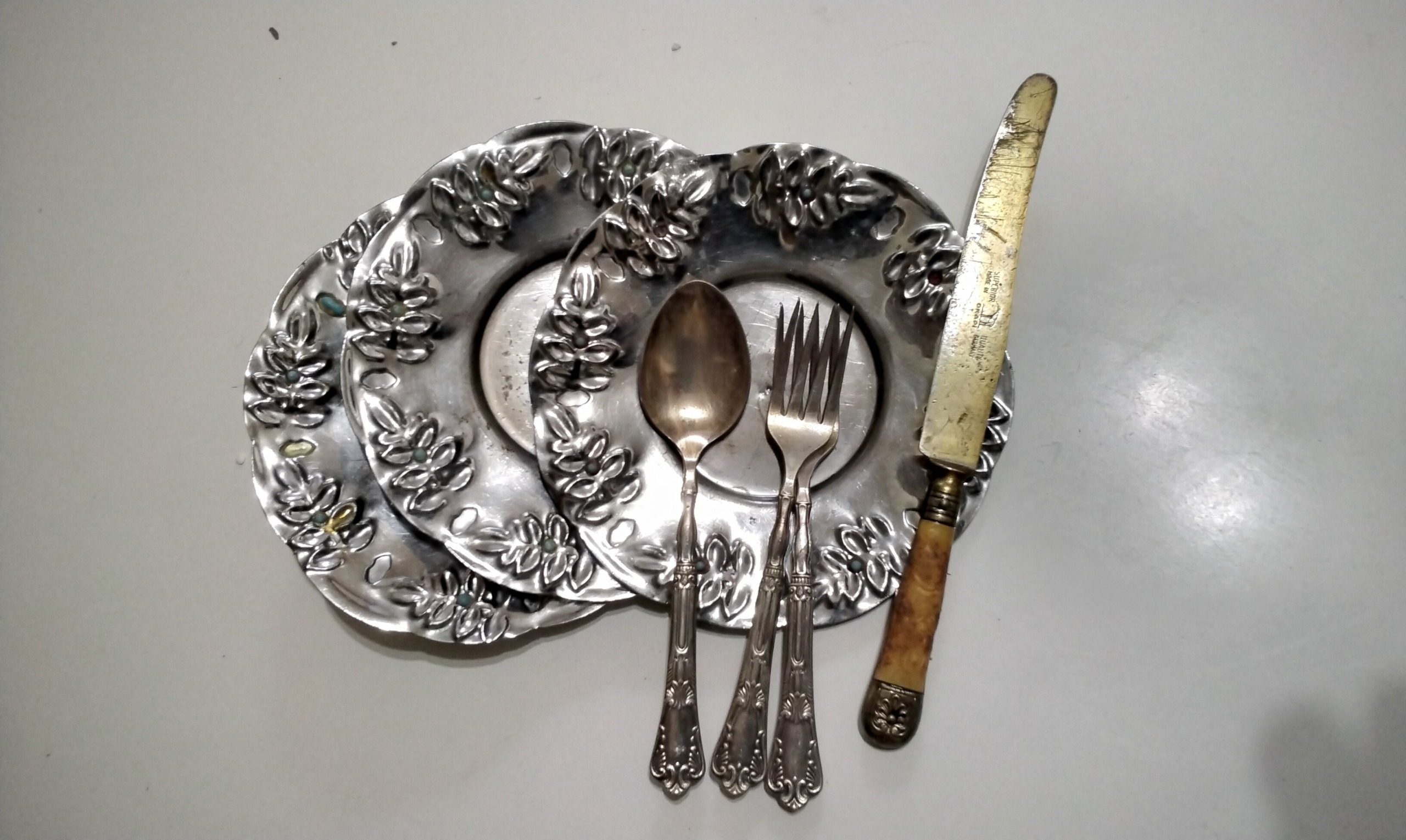 ست بشقاب قدیمی و قاشق نقره