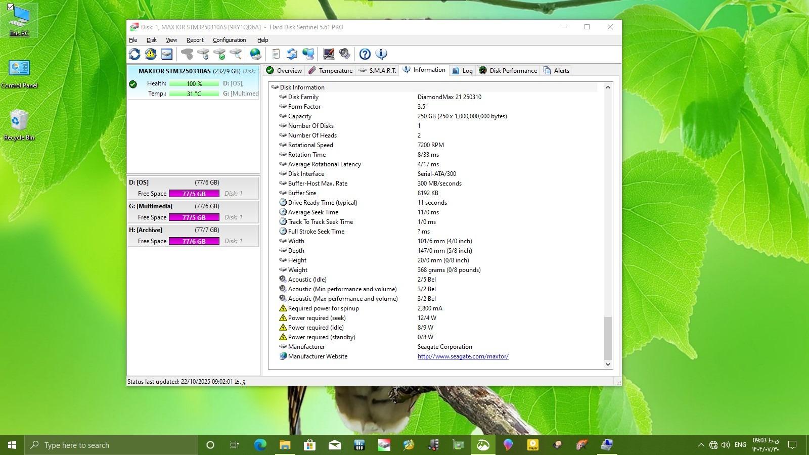 هارد250گیگMaxtor-سلامت و کارایی٪100