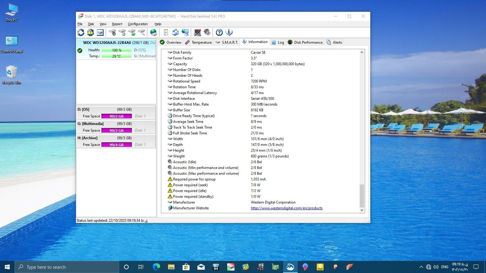 هارد320گیگWDسری خاویاری-سلامت و کارایی٪100