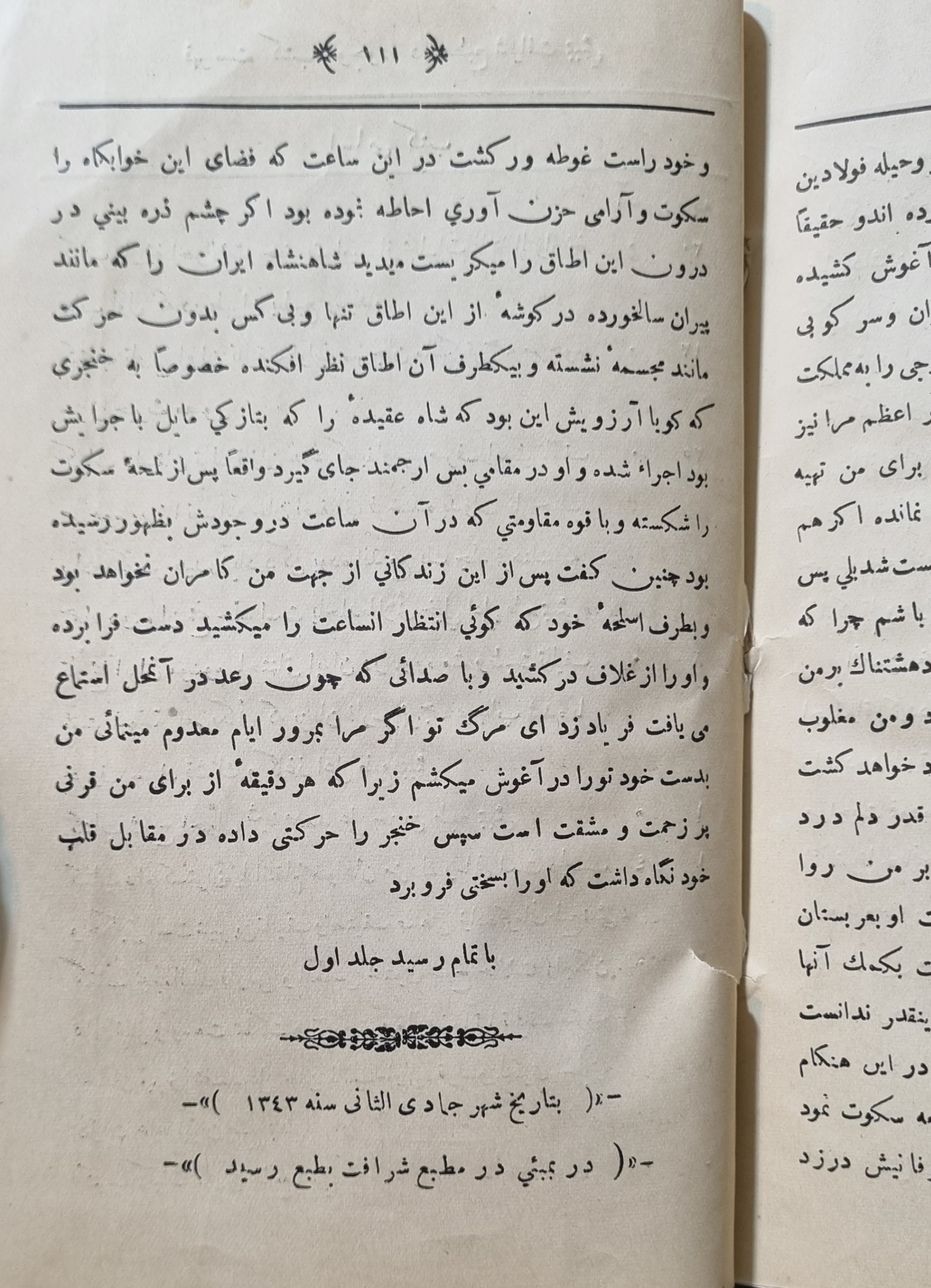 چاپ سربی سنه 1343 ه ق. در مطبعه شرافت بمبئی