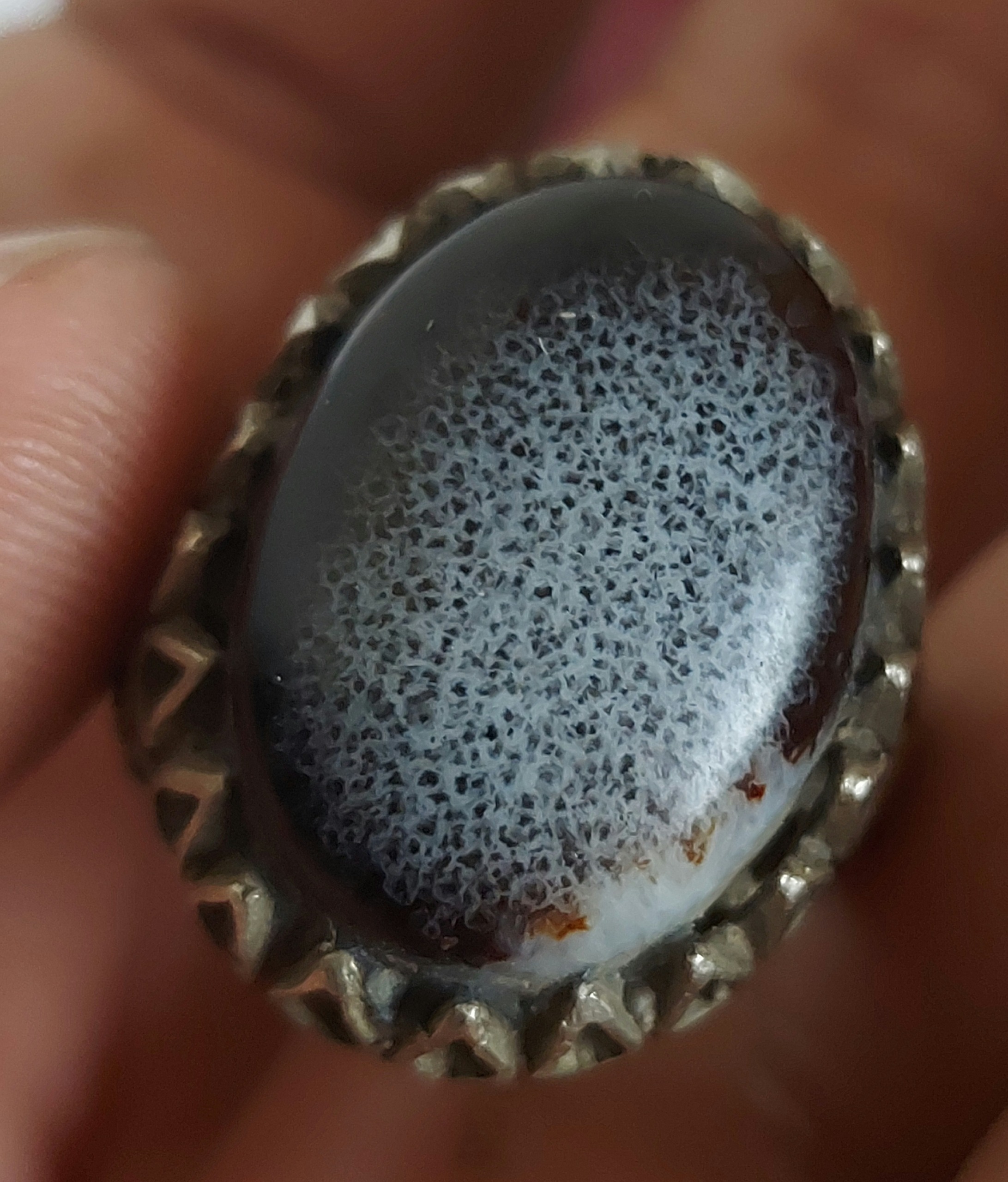 انگشتر نقره سنگ معدنی سیاه و سفید