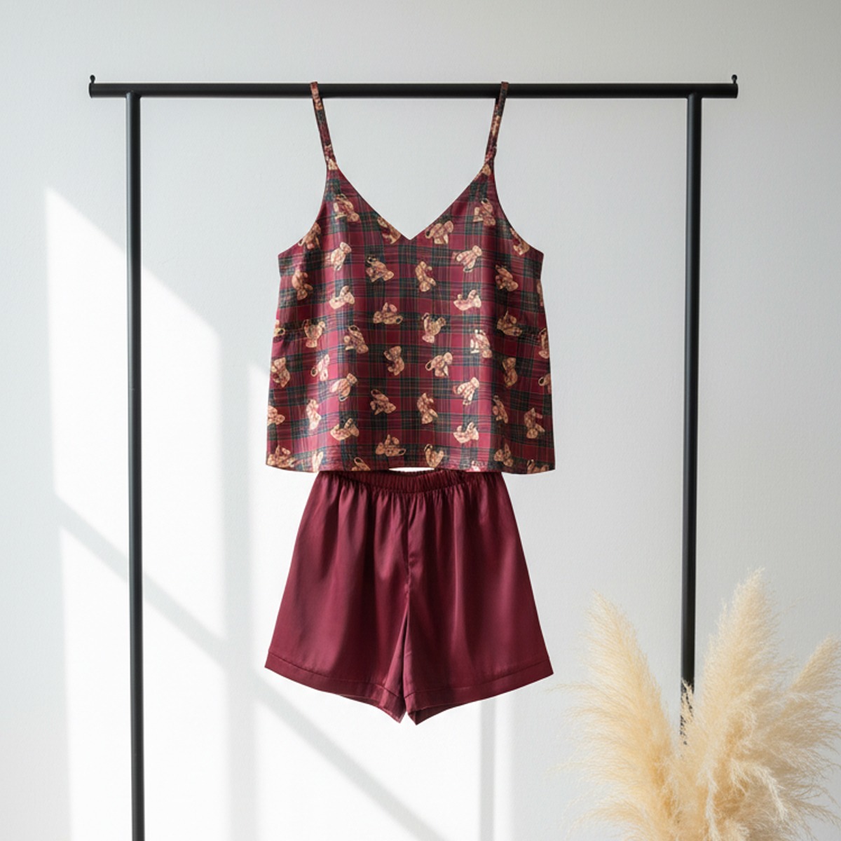 ست 7 تکه راحتی ساتن زنانه /طرح خرس
