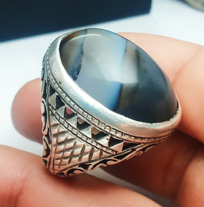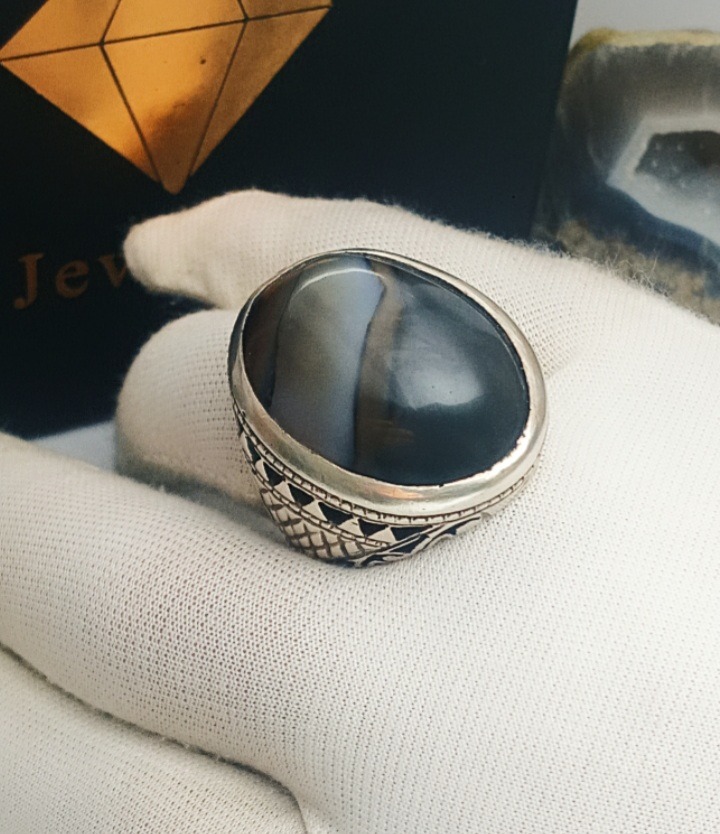 انگشتر خاص و زیبای جزع 3 رنگ طبیعی و اصالت دار