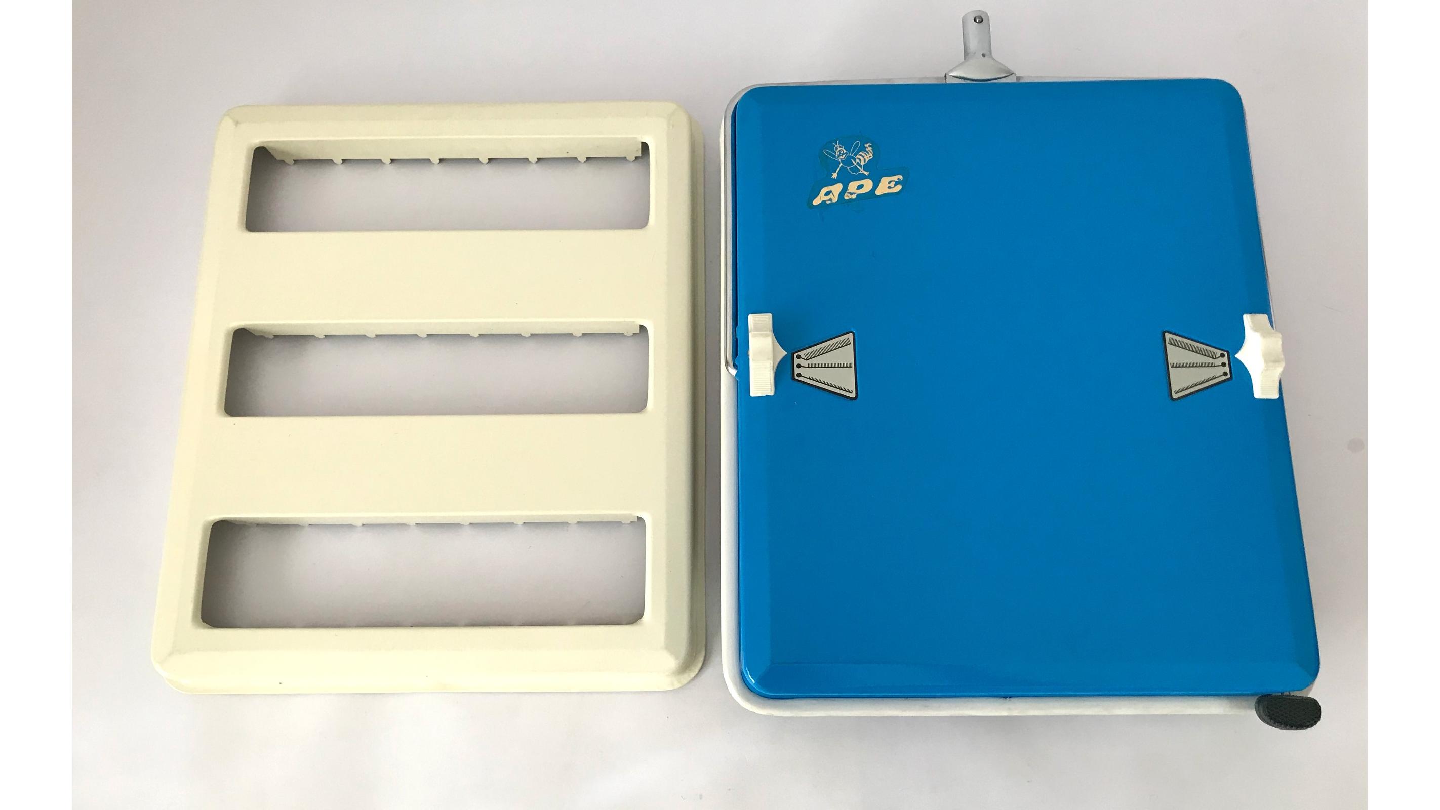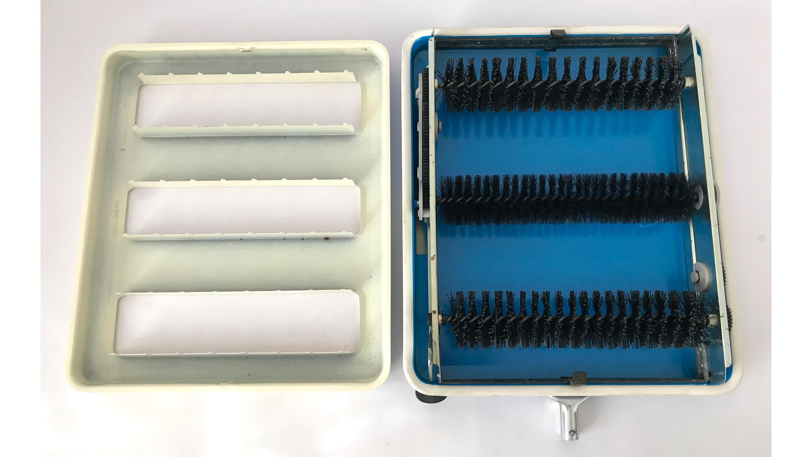 جارو دستی فلزی قدیمی دسته دار رنگ آبی بسیار کم استفاده شده ، تمیز و سالم