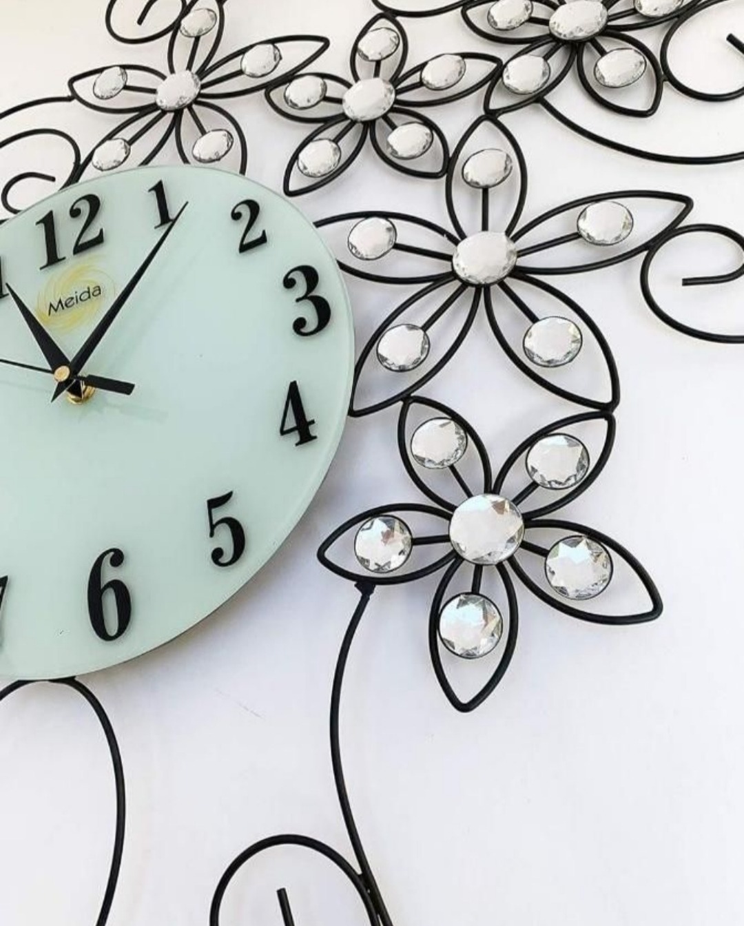 این ساعت زیبا با طراحی خاص نیمرخ زن و گلهای فلزی نگیندار، ترکیبی از ظرافت، درخشش و سادگی مدرن را به فضا میآورد.