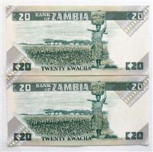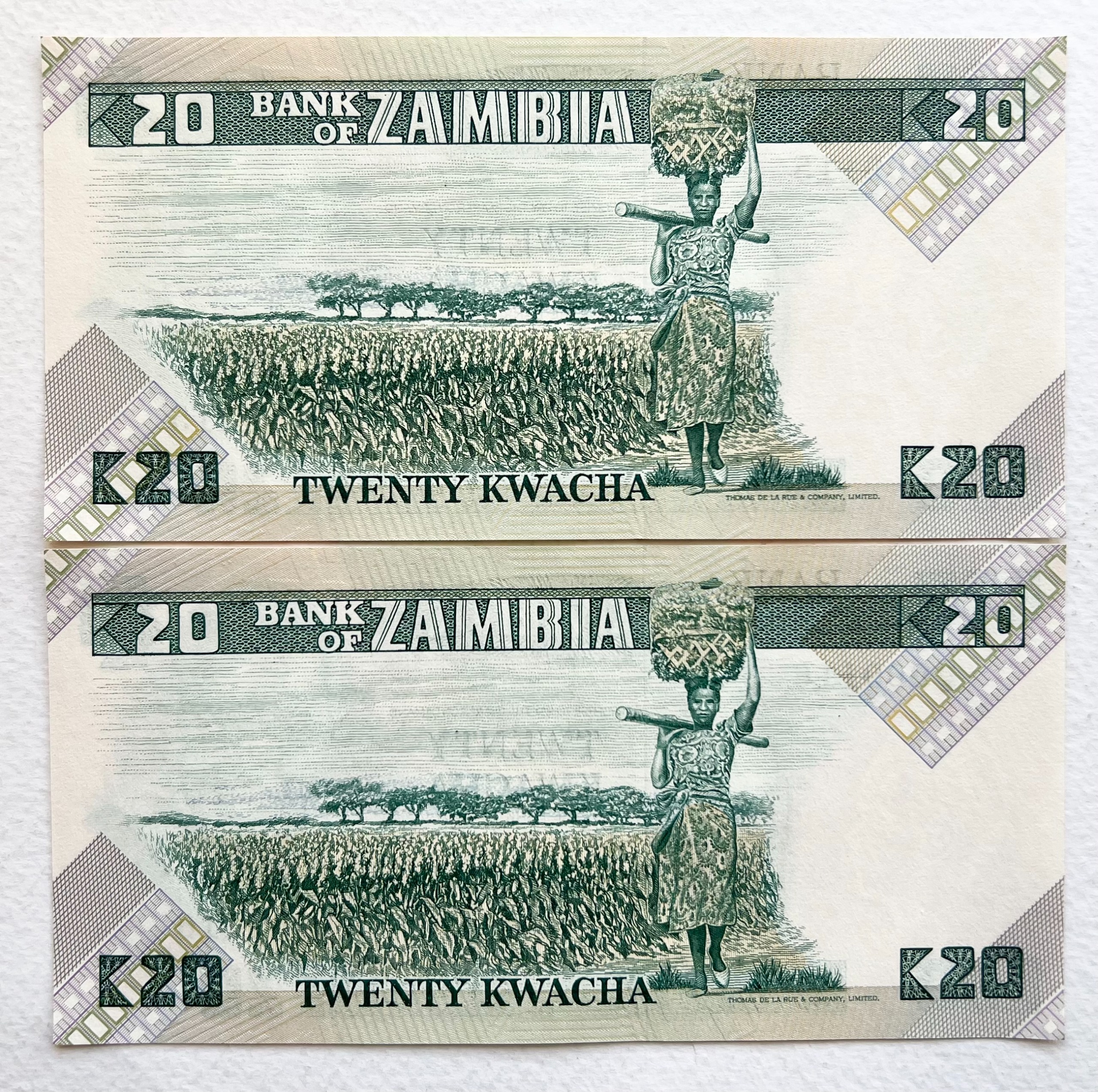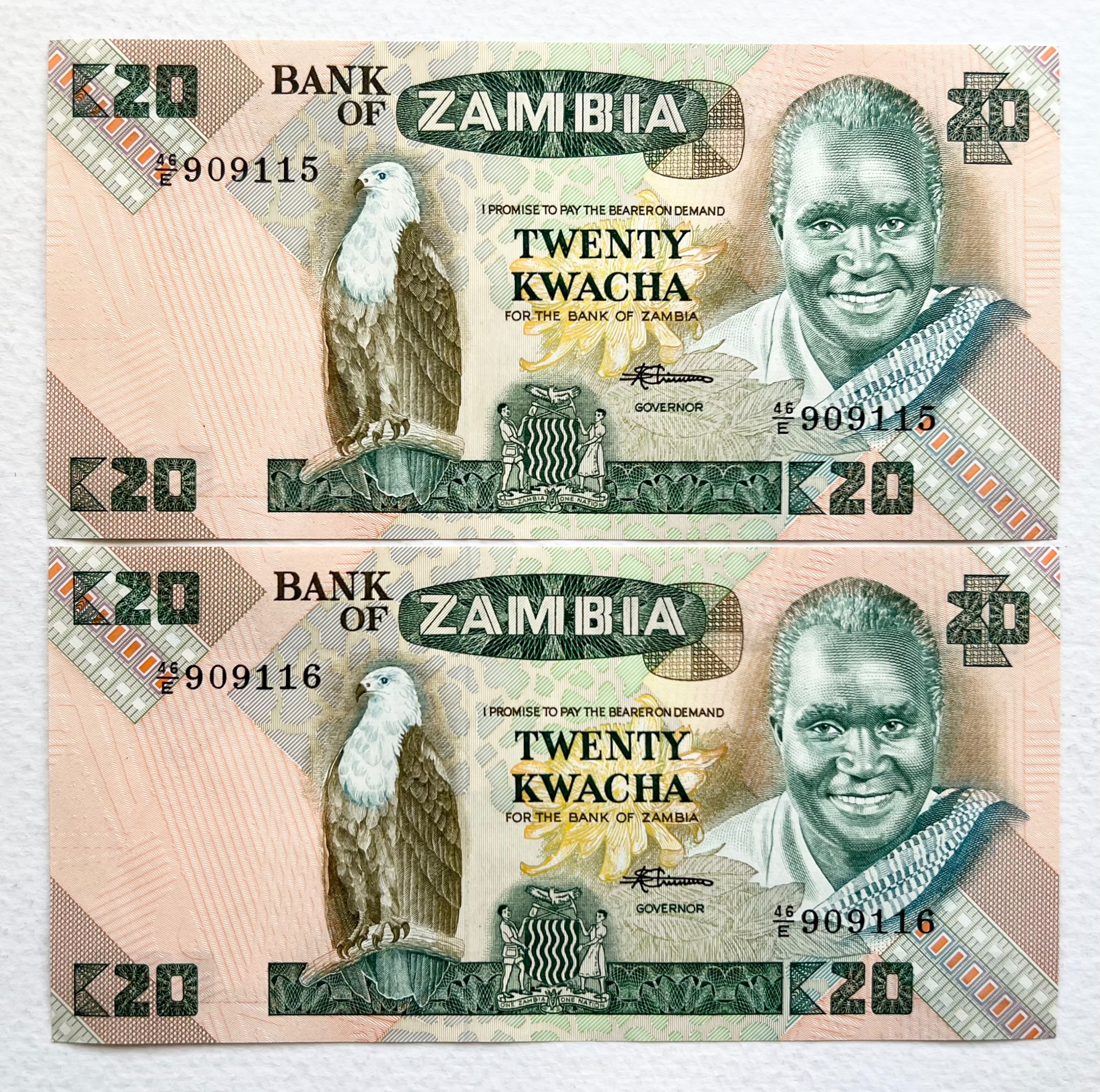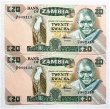 جفت اسکناس کمیاب خارجی 20 کواچا زامبیا 1988 بانکی
