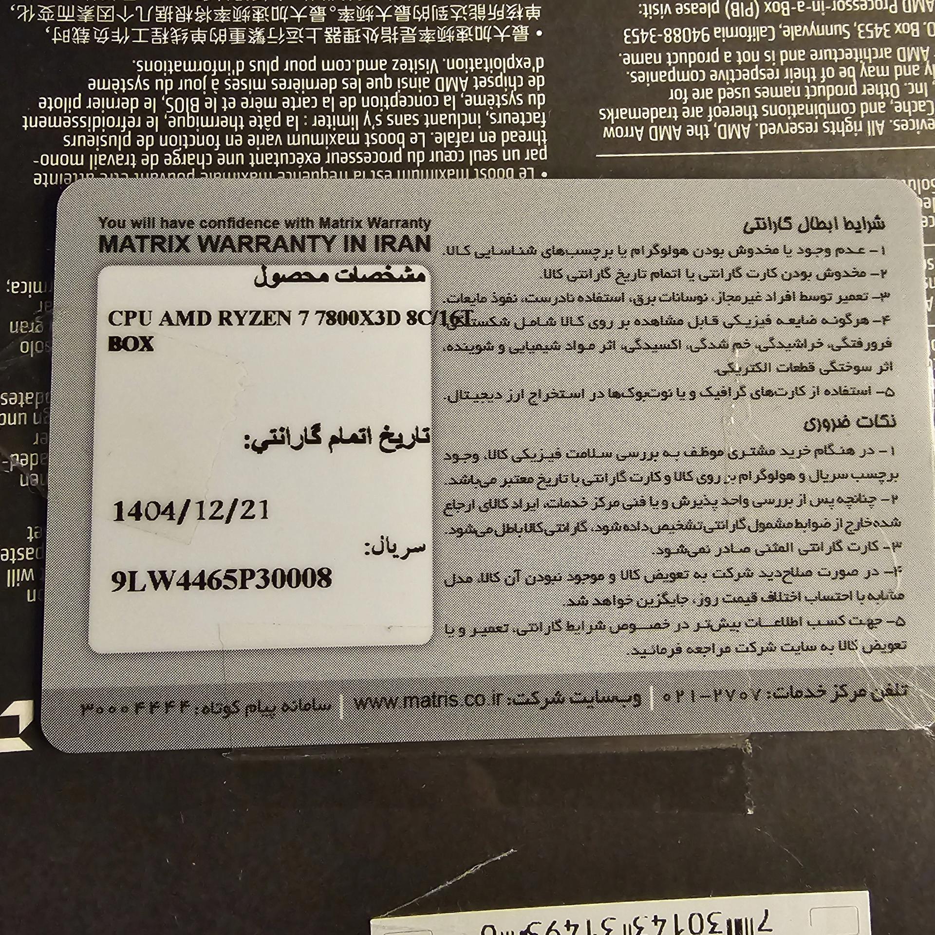 سی پی یو قدرتمند ای ام دی مدل باکس AMD Ryzen 7 7800X3D