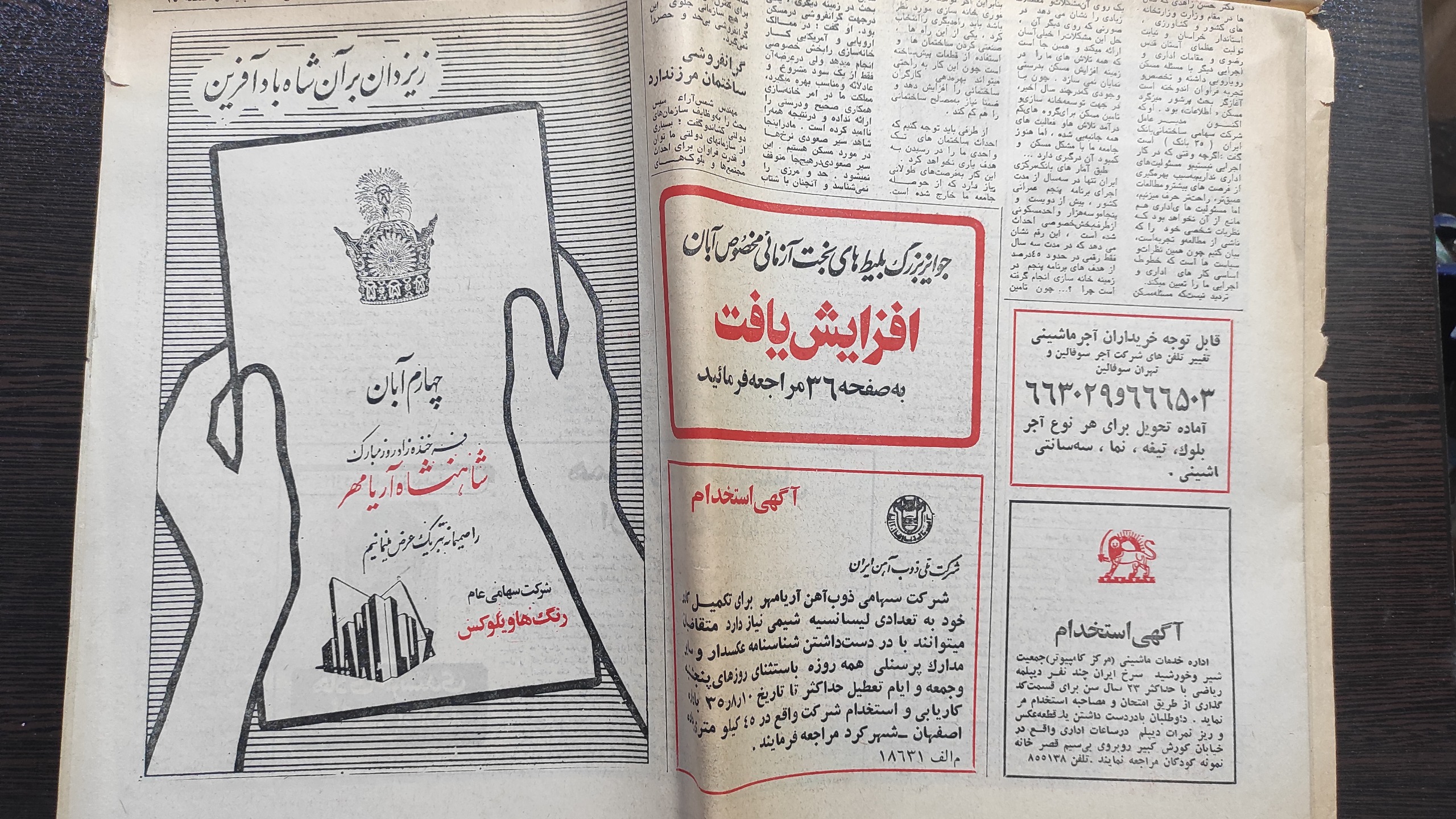روزنامه اطلاعات 16 آبان 1355تولد شمس پهلوی