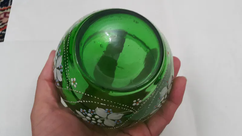 قندان شیشه ی قاجاری دانه نشان بدون قاپاق