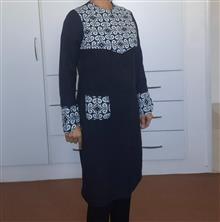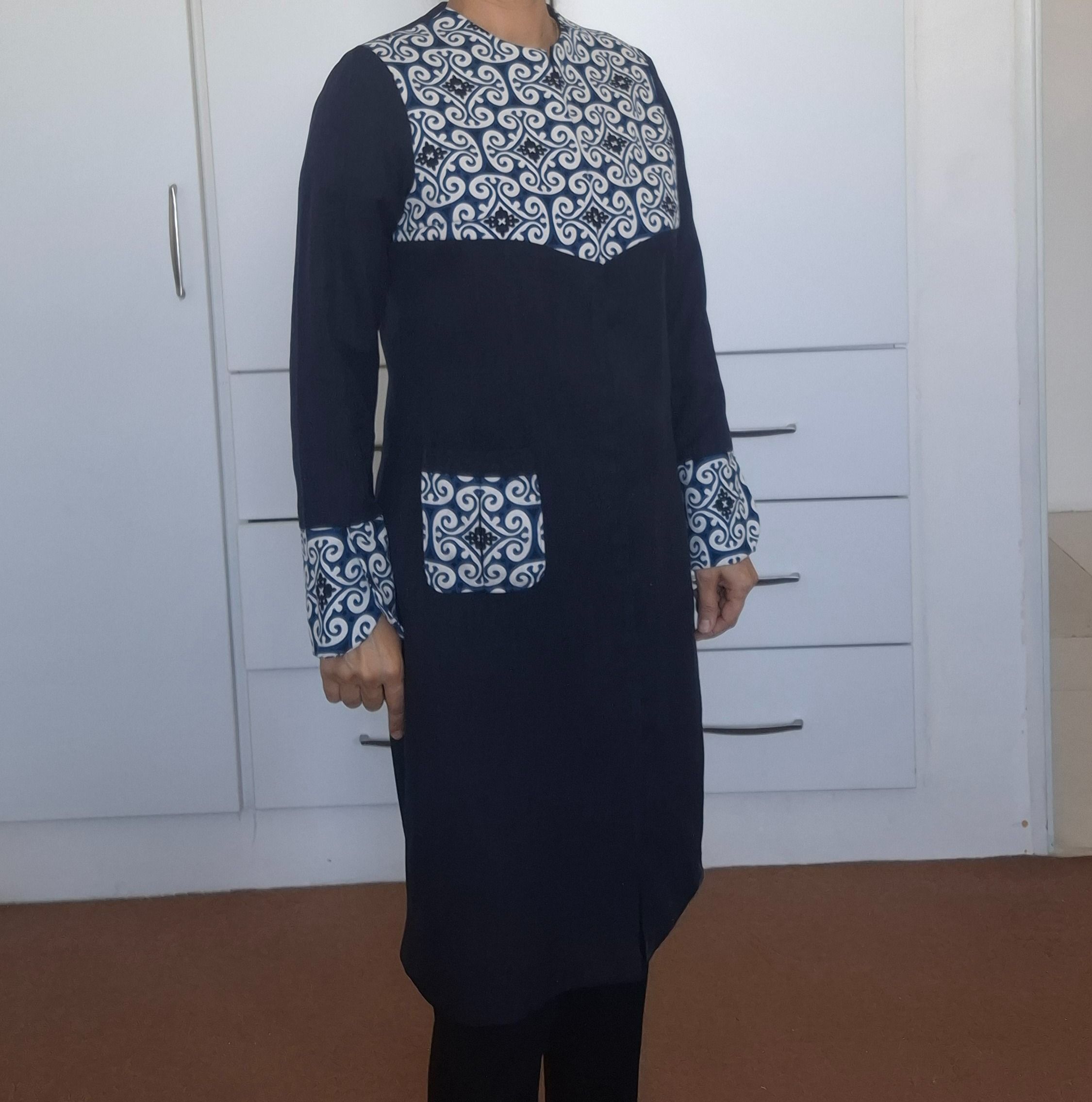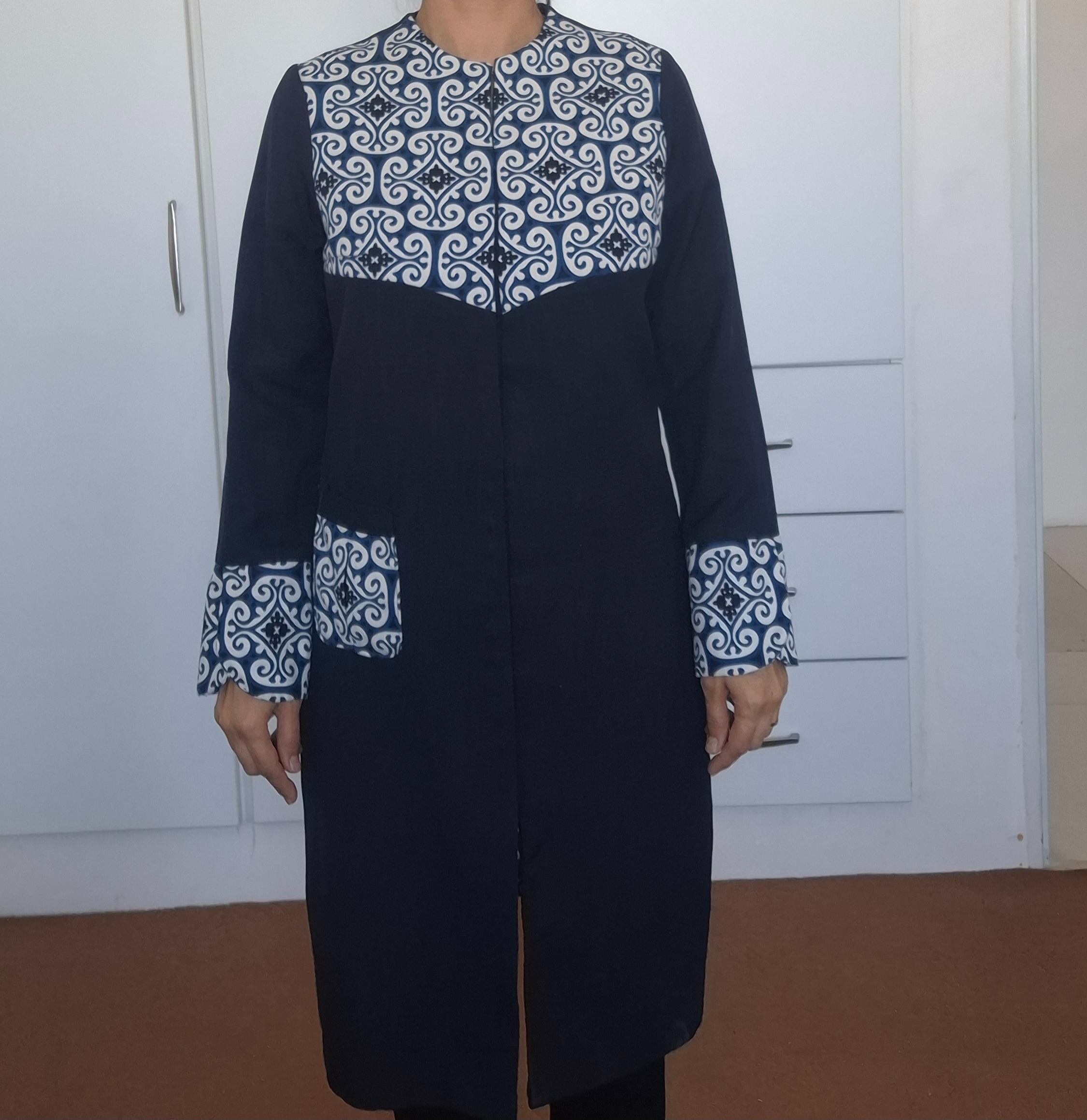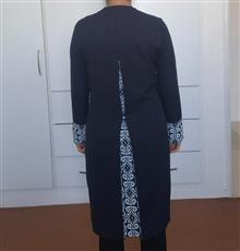 مانتو جنس شانتون 110 سانت قد مانتو، خیاط دوخته است، جلوی لباس دکمه ریلی کار شده است. تک جیب کاربردی دارد