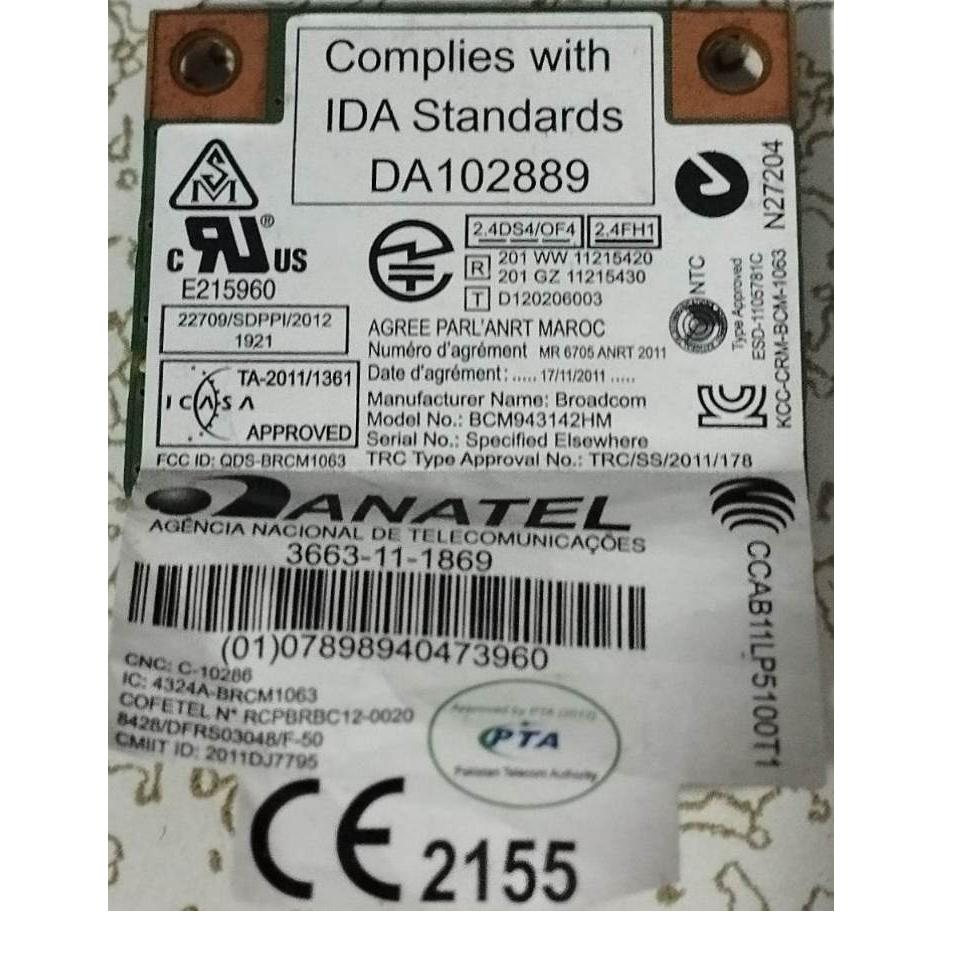 کارت وایرلس لپ تاپ BCM43142HM