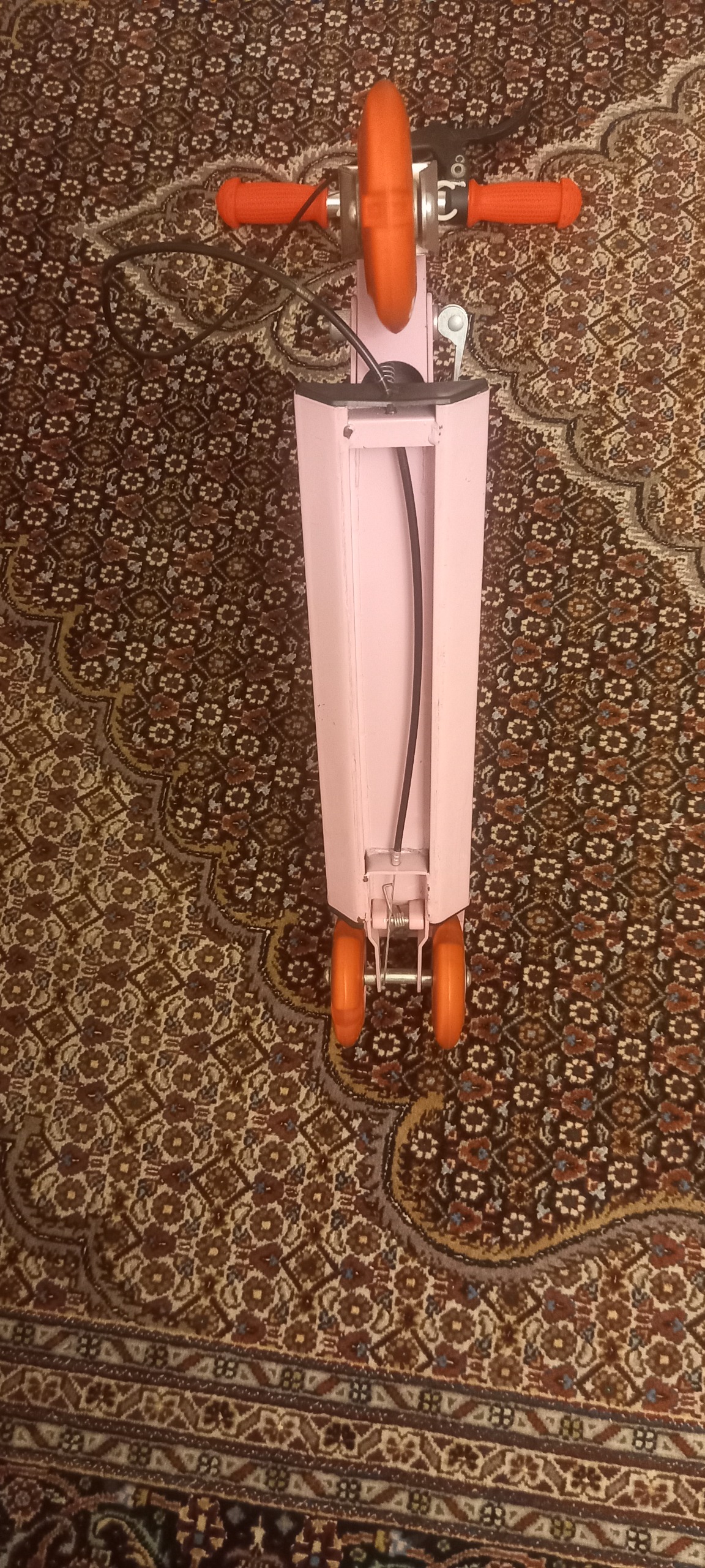 اسکوتر نونو قدیمی  کالا کاملا نو هست ولی چون از قبل مانده نوشتم در حد نو که بعدا مسئله نشود جنس کالا کلا فلزی است واز اسکوتر های پلاستیکی بی دوام امروزی نیست اسکوتر تاشو ترمز دار کف اسکوتر حدودا 40 سانتیمتر  وبا گردان فرمان وپدا ل ترمز حدودا 58 سانتی متر فرمان کالا   سه حالته حد اقل حدودا55  حد وسط 70 وحداکثر 85 سانتیمتر  دارای قفل ضامن حد اقل ارتفاع  وحداکثر ارتفاع فرمان هست  ترمز دوحالته هم دستی وهم با پا میشود ترمز کرد  رنگ کالا صورتی خوش رنگ   چرخها از جنس ژله ای خیلی سفت ومحکم است کالا طبق عکساها وبر مبنای نوشته های اطلاعاتی ما فروخته میشود چون مرجوعی کالا به هیچ عنوان نداریم لطفا در خرید تان توجه لازم رامبذول فرمایید        توجه توجه هزینه پست هر چقدر از هزینه اعلامی  سایت ایسام بیشتر  باشد از خریدار محترم اخذ خواهد شد لطفا توجه فرمایید