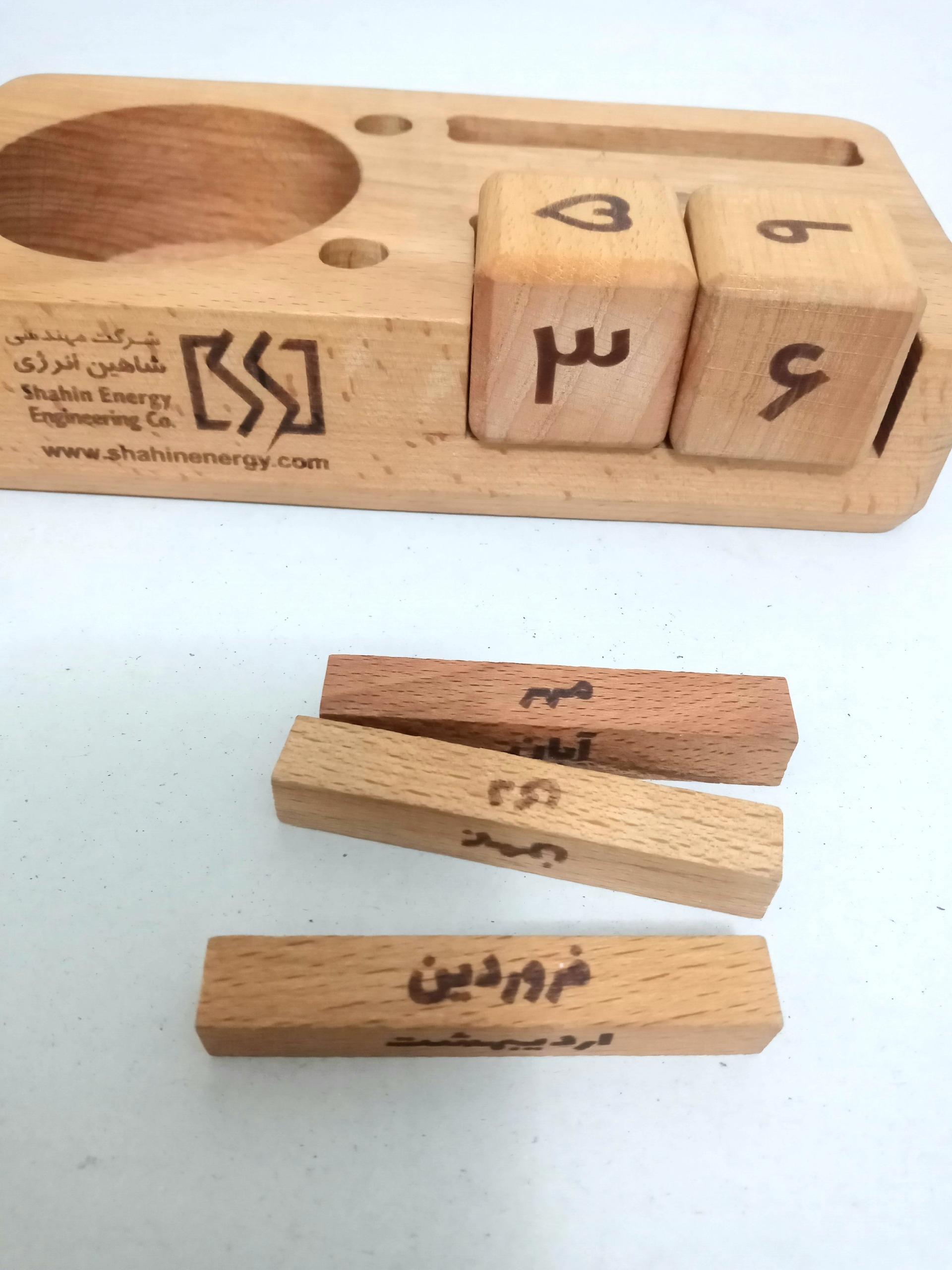 ومشابه این چیزهاست درکنارش هم سه تیکه مکعبی مستطیل و دوتیکه مکعبی مربع هم داره که نام ماههای سال شمسی، و اعداد یک تا شش تاس مانند، قرارداره، که فقط مختص گاه نگاری میتونه باشه
