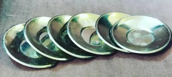 نعلبکی فلزی(آهنربا میگیرد) بدلیل روکش آبطلا؛ طلایی و براق