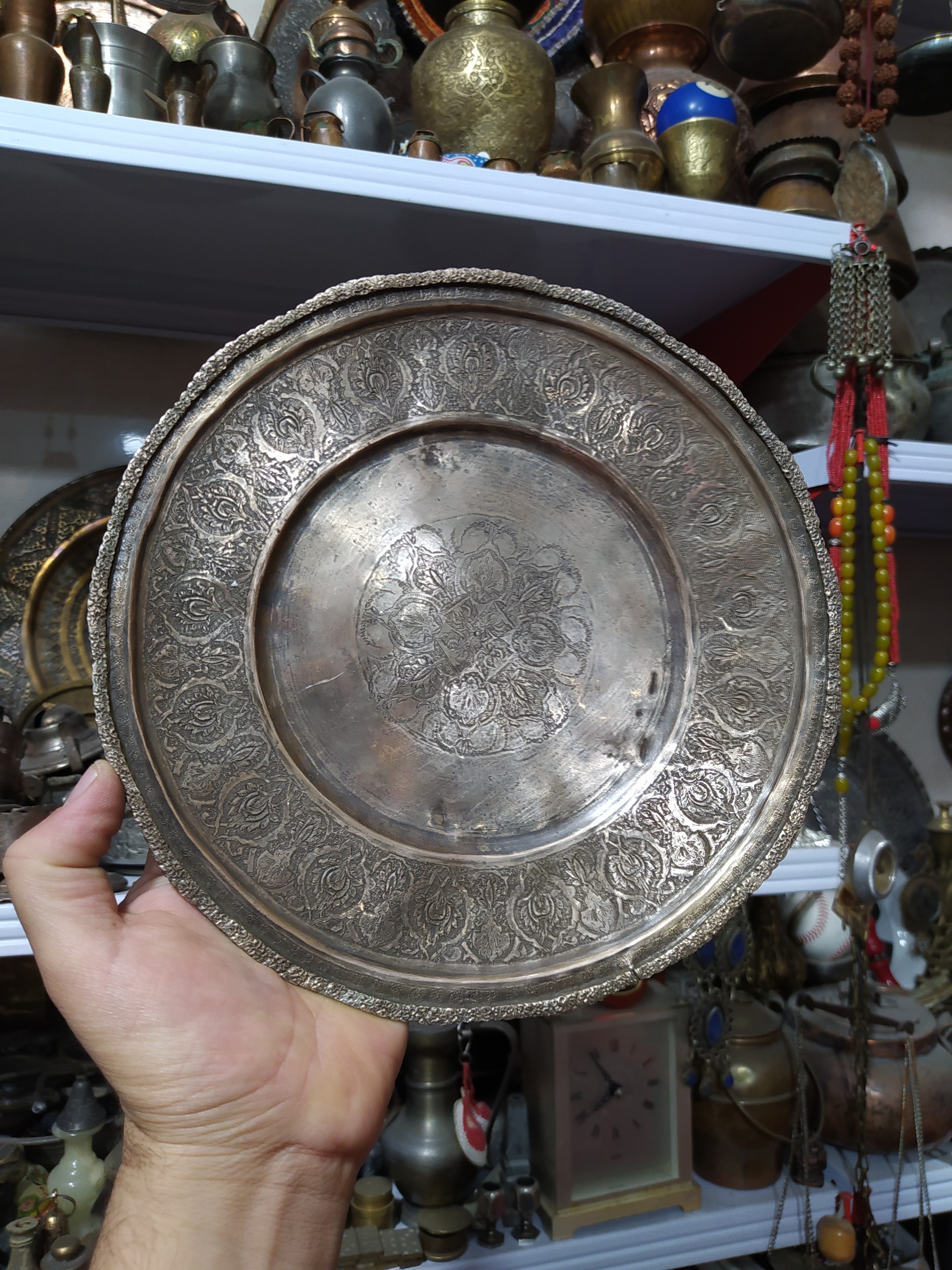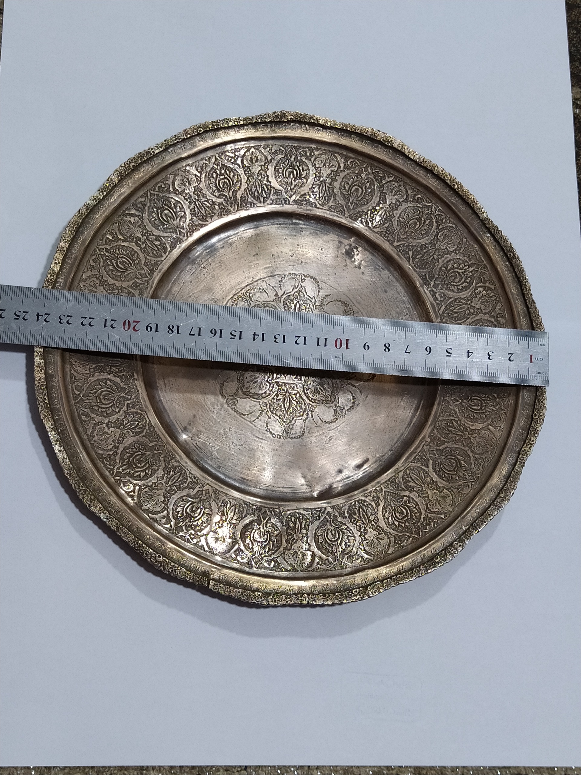 سینی قدیمی نقره عیار 84 قلم زنی دست عیار دار