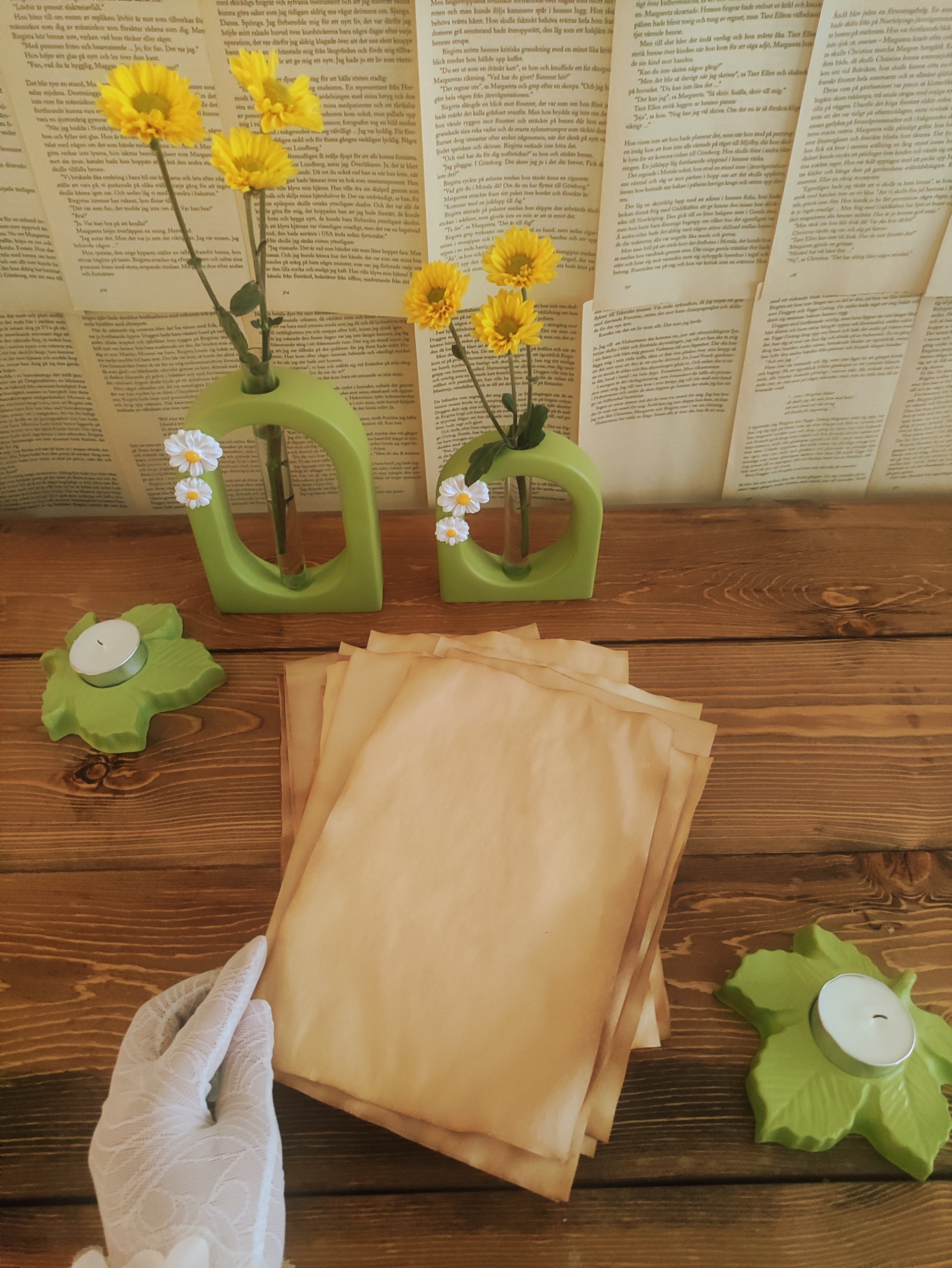 هر برگ با عشق و دقت با چای رنگ شده تا جلوه ای قدیمی و خاص پیدا کند.